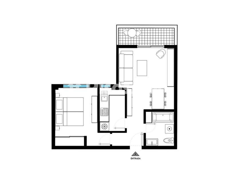 La propiedad tiene 54m² distribuido en un salón comedor, 1 habitación con 2 camas individuales, además de contar con armarios empotrados. Tiene una terraza de 4m² con vistas a la piscina y una cocina individual con muebles altos y bajos en buen estado. Un baño completo con lavabo en porcelana sobre mueble.
