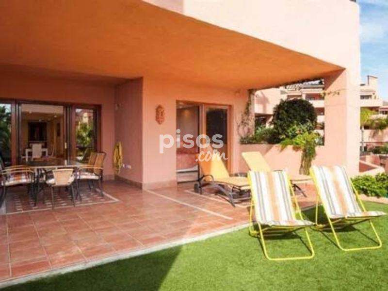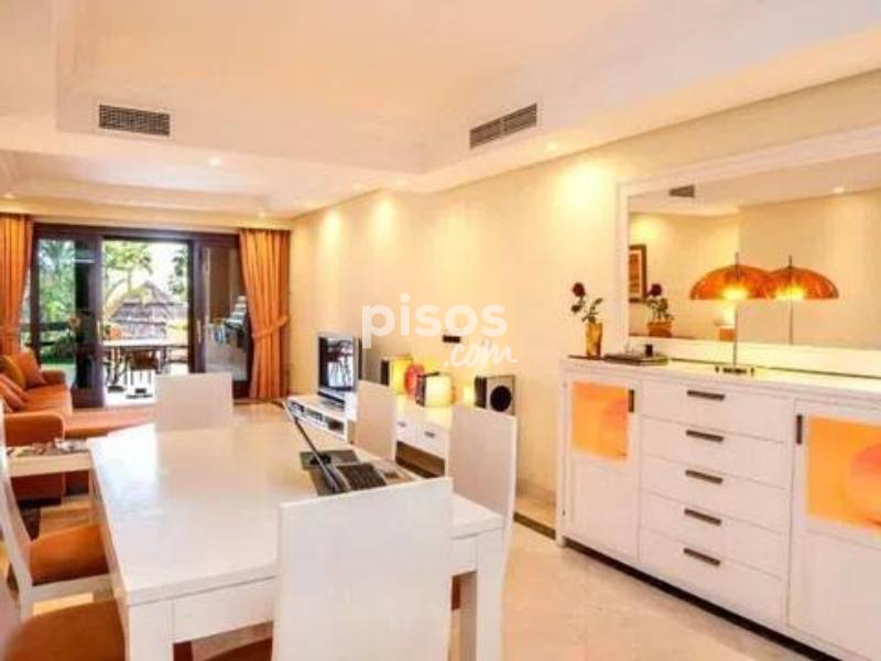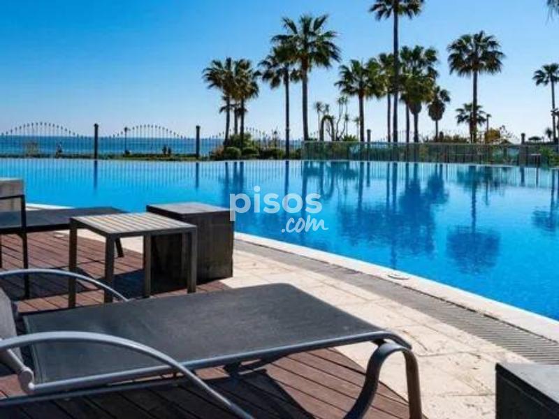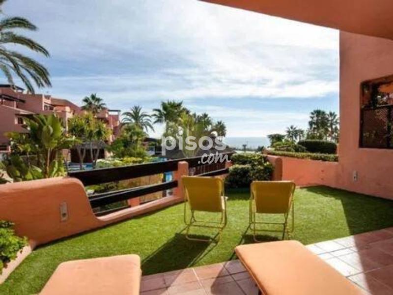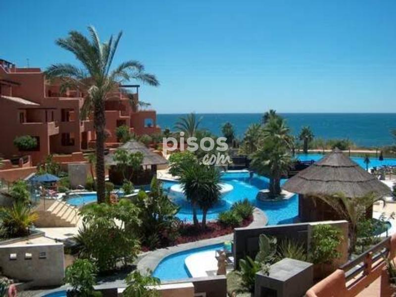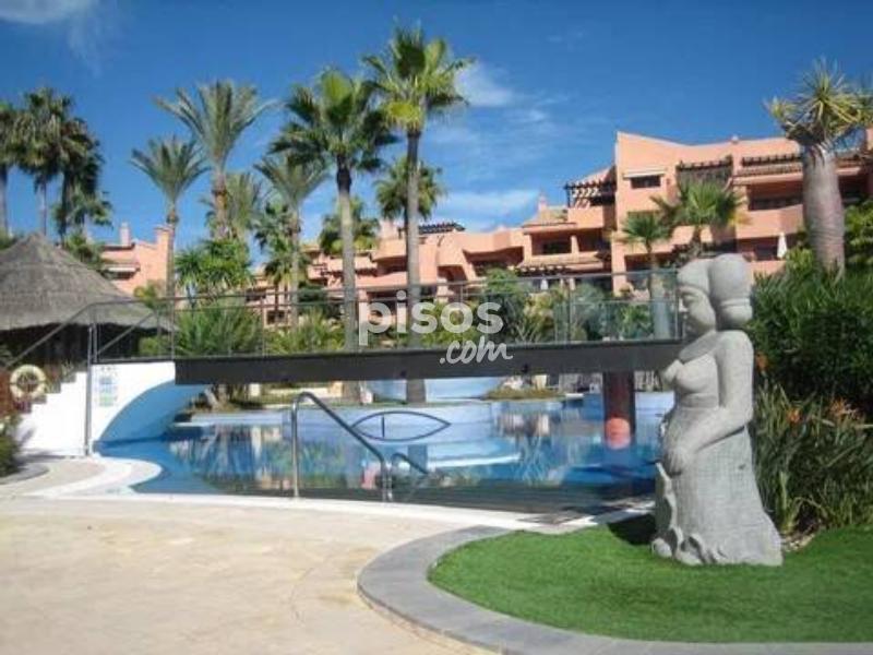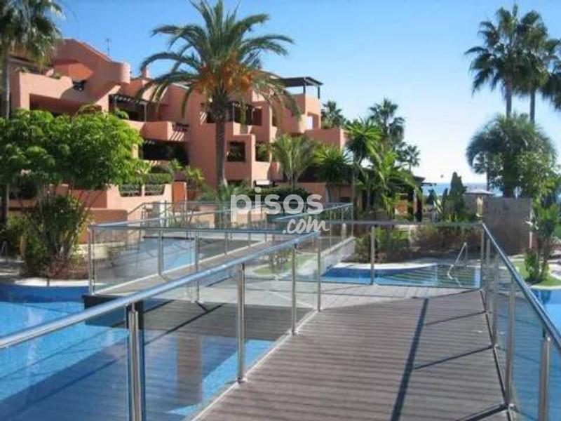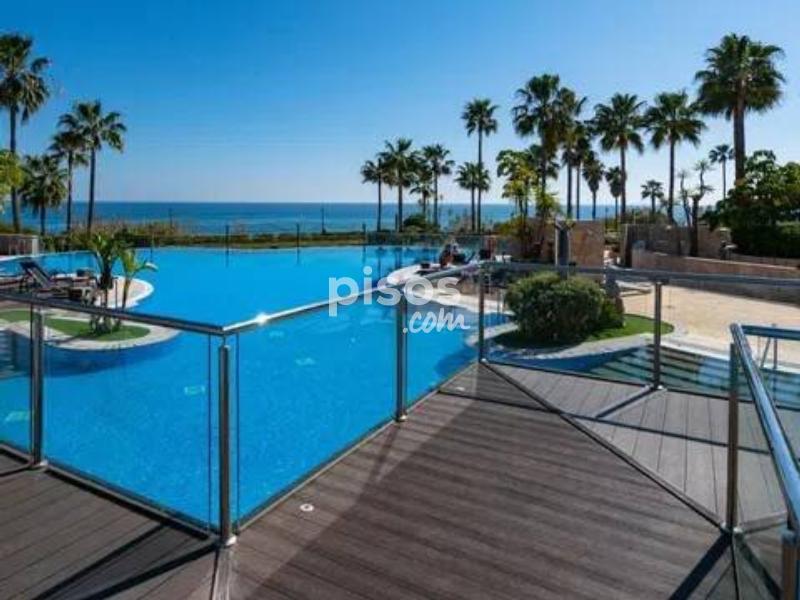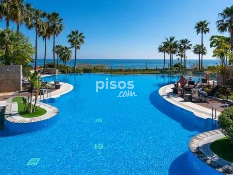 ¡Magnífica oportunidad! apartamento en 1º línea de Playa ubicado en un reconocido y lujoso complejo de cinco estrellas en las inmediaciones de Estepona. El apartamento consta de 2 dormitorios y 2 baños. Es un bajo en altura a pocos pasos de la piscina principal, con lo cual disfruta unas vistas privilegiadas a la zona de la piscina, los jardines y el mar. Está en excelentes condiciones, la vivienda tiene una superficie de 124 m2, una terraza de 35 m2 y jardín de 25 m2. Gracias a su orientación disfruta de muchas horas de sol. Este precioso complejo residencial además de estar en primera línea de playa consta de spa, gimnasio, seguridad y recepción 24 h. Disfrutar de esta vivienda es todo un lujo, es una gran oportunidad tanto como vivienda permanente como para inversión, pues tiene alta demanda de alquiler tanto para larga como para corta temporada. Llámenos ahora para concertar una visita.