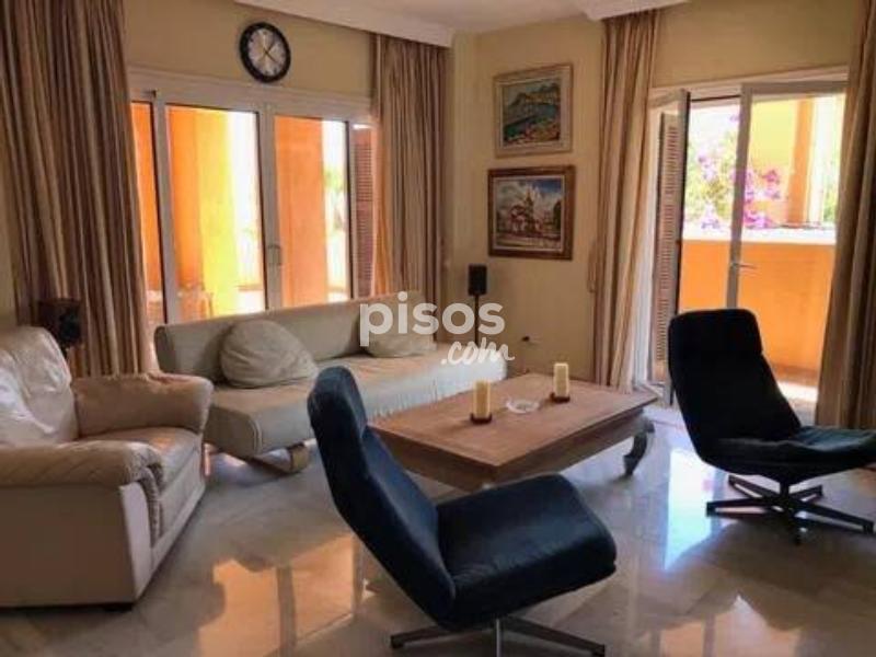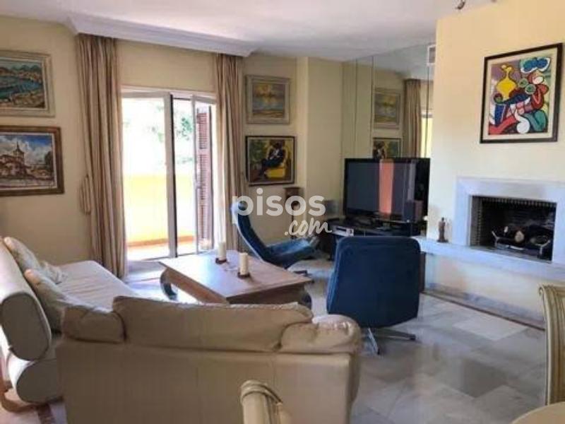 En la zona de los más prestigiosos campos de golf de Marbella, a pocos minutos de Puerto Banús, se encuentra este amplio apartamento de 256 m2 en planta baja de 2 dormitorios, 2 baños y un aseo, ubicado en el precioso conjunto Palacete Los Belvederes en Nueva Andalucía. La vivienda está en planta baja y tiene orientación suroeste. Ofrece maravillosas al paisaje costero y a los campos de golf de los Naranjos, Las Brisas y Alhoa. La vivienda tiene suelos de mármol, chimenea, aire acondicionado, calefacción y una preciosa terraza. La urbanización tiene piscina para adultos, piscina infantil, frondosos jardines y seguridad 24 h. ¡Llame ahora para concertar su visita!