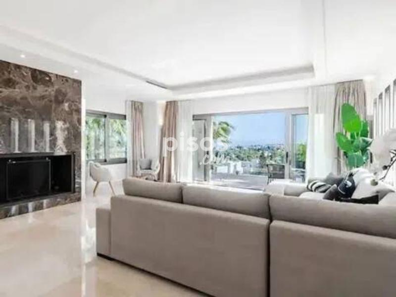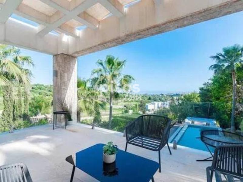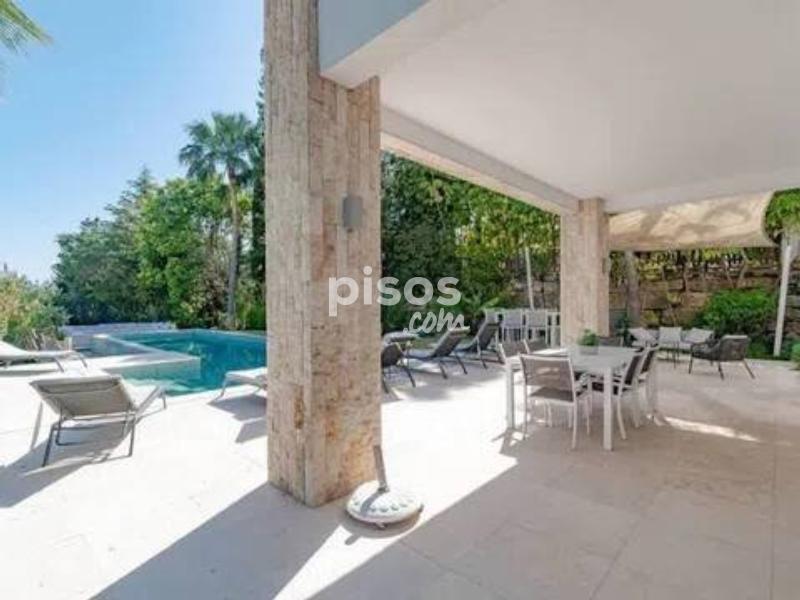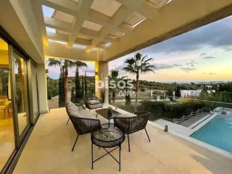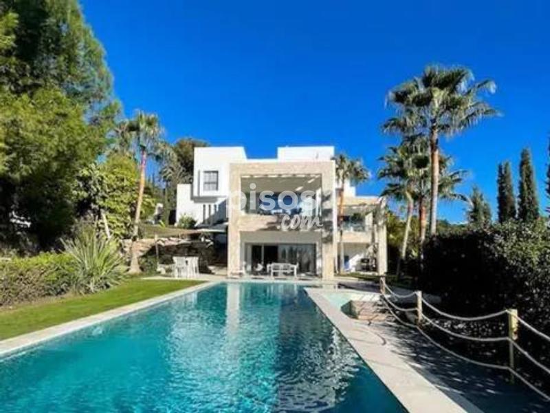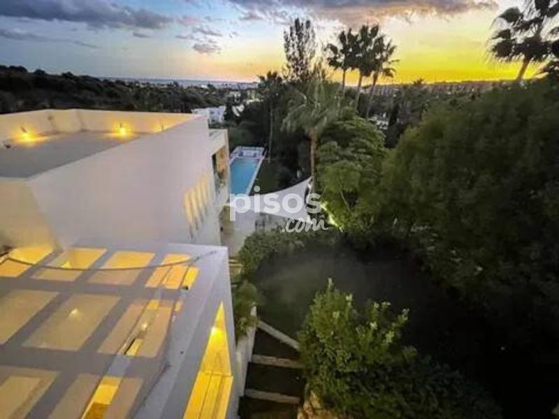 Exclusiva Villa de Lujo con Vistas al Mar en un Entorno Privilegiado de la Costa del Sol Descubre esta magnífica villa de diseño abierto, una joya arquitectónica que combina a la perfección lujo, privacidad y confort. Situada en una de las zonas más demandadas y con mayor crecimiento económico de la Costa del Sol, esta propiedad es ideal tanto para quienes buscan una inversión sólida como para familias con niños, gracias a la excelente calidad de los colegios de la zona. La planta baja de la villa se integra armoniosamente con la terraza y el exuberante jardín, ofreciendo preciosas vistas al mar y una impresionante piscina infinita. Junto a ella, una acogedora zona de relax con chimenea te invita a disfrutar de momentos inolvidables. La villa cuenta con dormitorios en suite en cada planta, garantizando la máxima privacidad para todos sus residentes. Esta urbanización privada ofrece seguridad 24 horas, y la villa incorpora la última tecnología para tu tranquilidad y comodidad. Además, pensando en la sostenibilidad, dispone de paneles solares en el techo. La vivienda se entrega completamente amueblada y lista para entrar a vivir. Distribuida en tres plantas conectadas por una escalera interior y un práctico ascensor, la villa ofrece espacios generosos y bien distribuidos: La planta semisótano alberga un amplio y luminoso salón con acceso al jardín y una piscina de 60m² con zona chill-out, un lujoso spa-sauna, cuarto de instalaciones, aseo de caldera, dos dormitorios en suite y un porche. La planta baja dispone de un elegante recibidor, cocina abierta, salón con porche, un dormitorio con baño en suite y vestidor, y una terraza con pérgola accesible también desde la cocina. Además, cuenta con acceso directo a un garaje integrado para dos coches. La planta semi-alta está dedicada a un espacioso dormitorio principal con un gran vestidor, baño privado y una terraza privada de 44 m². La planta superior completa la vivienda con un luminoso dormitorio con baño en suite y terraza. Para encontrar las propiedades más exclusivas en esta próspera región, confía en los expertos. Newbery Real Estate es la agencia con más experiencia en la Costa del Sol, garantizando un asesoramiento inigualable. ¡No pierdas la oportunidad de vivir en el paraíso! Contacta hoy mismo con Newbery Real Estate para concertar una visita y descubrir la villa de tus sueños.