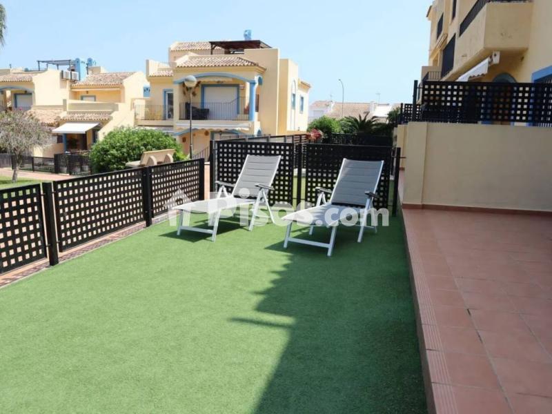 VUT 0517801-A ALQUILER DE OCTUBRE A ABRIL 1.000 € + SUMINISTROS ALQUILER DE VERANO: DISPONIBLE HASTA EL 16 DE AGOSTO DE 2025 Precio por semana 1.300 € Precio por quincena 2.200 € Bonito apartamento ubicado en Las Marinas km 10, perteneciente a la localidad de El Verger. A tan sólo 380 m de la playa. Cerca de gimnasio y supermercados. Planta baja. Consta de 2 dormitorios, 2 baños, salón-comedor, cocina independiente con galería y terraza con terrenito propio vallado. Aire Acondicionado Preciosa urbanización con jardín, piscina y pista de pádel.