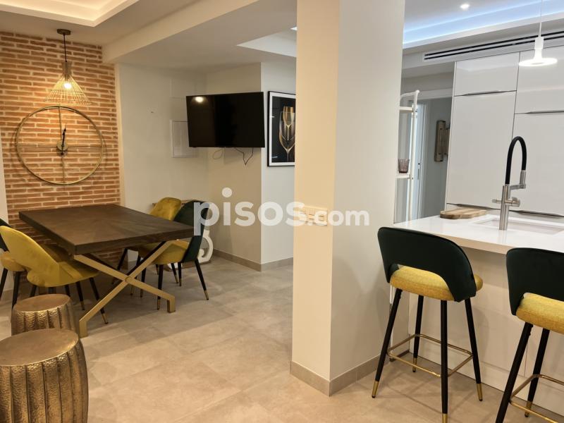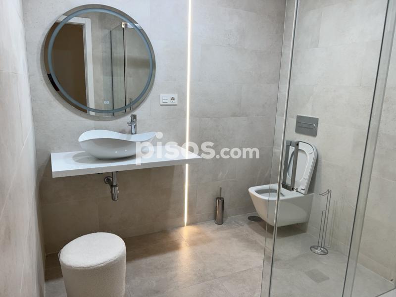 Este apartamento se alquila para larga temporada. Esta situado en planta baja cuenta con una superficie construida de 75 m² y útil de 65 m². Dispone de dos dormitorios, dos baños y aseos, además de un lavadero y armarios empotrados en más de dos espacios. La vivienda es de nueva construcción con menos de dos años de antigüedad. El suelo es de terrazo y la carpintería exterior de PVC. Está completamente amueblado y ofrece cocina equipada, así como aire acondicionado por conductos con frío y calor. Está a 70 metros de paseo marítimo, 50 metros de la plaza de la Constitución y a 200 metros de la estación de tren y autobuses.
