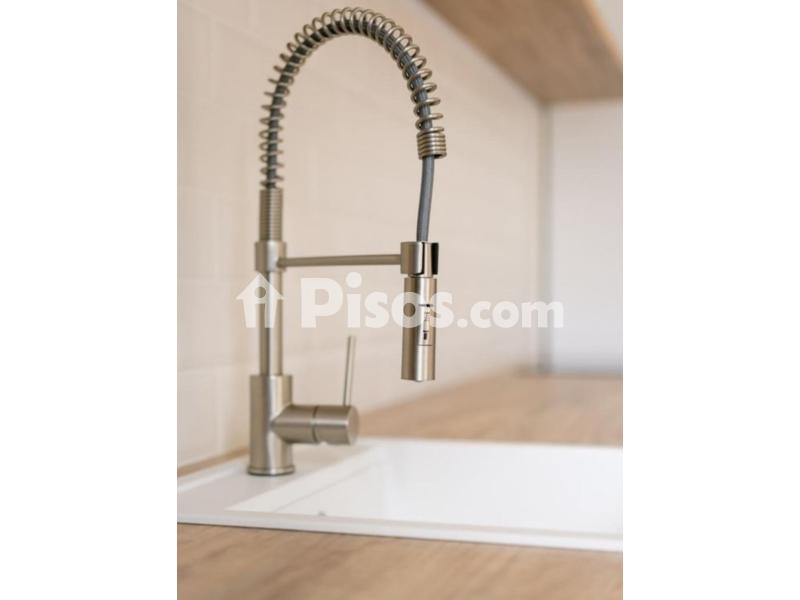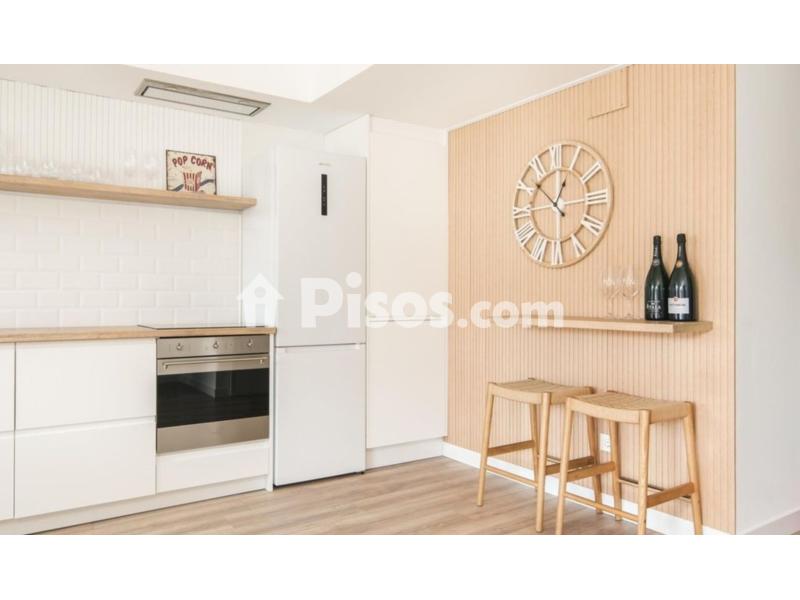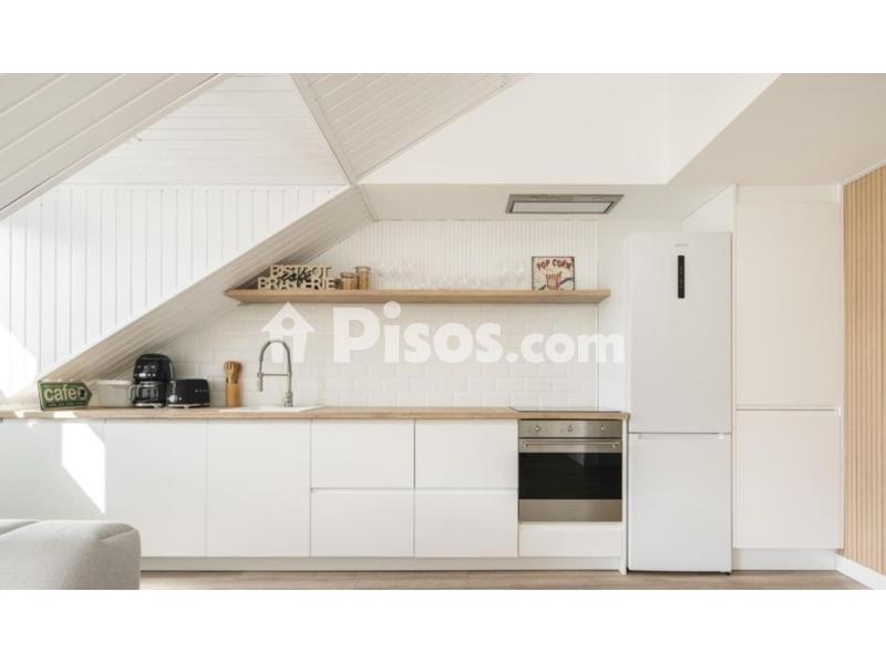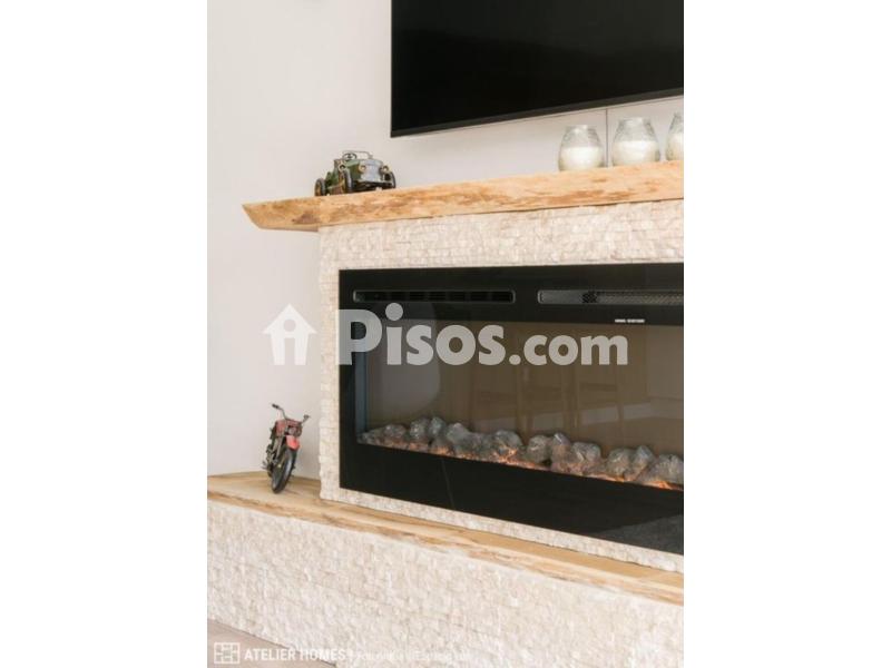 La cocina de tipo americano totalmente actualizada y equipada se integra a la perfección con el salón que dispone de un gran ventanal y una bonita chimenea decorativa para disfrutar.