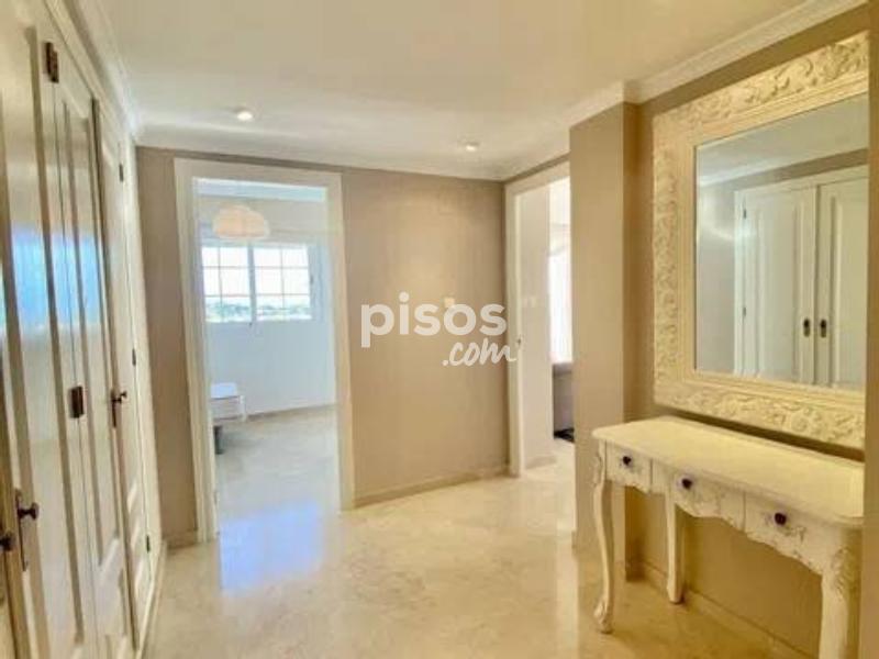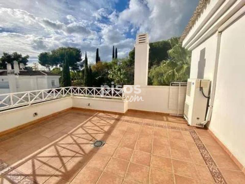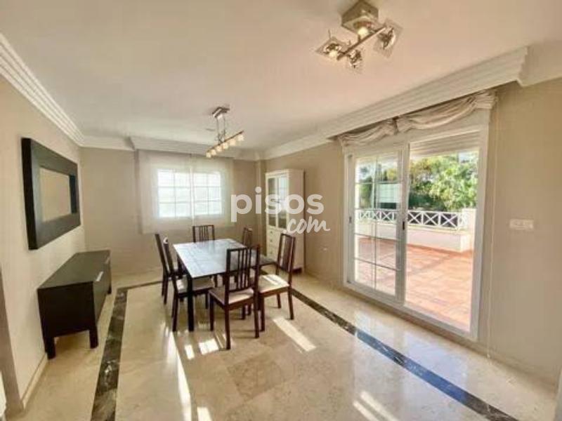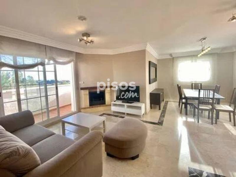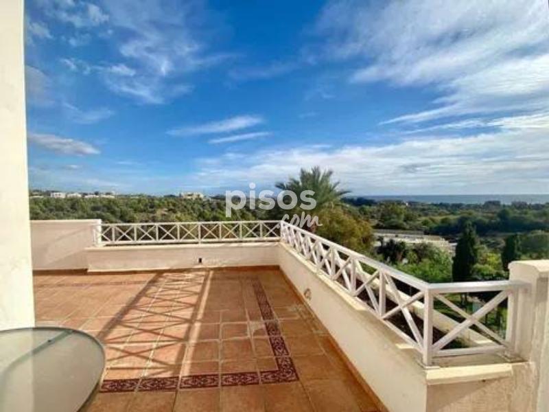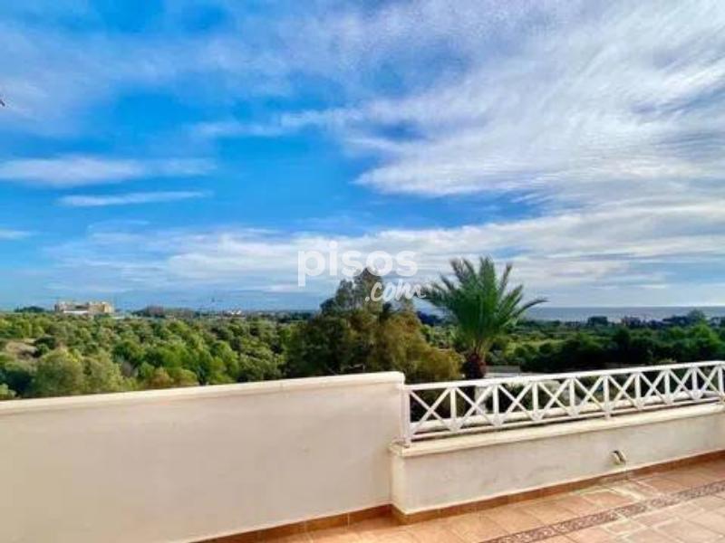 Magnífico ático de 3 dormitorios en venta en Río Real, ofreciendo impresionantes vistas panorámicas de 180º desde sus 2 amplias terrazas, que disfrutan del sol desde la mañana hasta el atardecer. Este exclusivo ático es único en su tipo en esta codiciada urbanización, ofreciendo total privacidad al estar en la planta superior y no tener vecinos contiguos. La propiedad se distingue por su espaciosidad y comodidad. Cuenta con un salón independiente y un comedor con capacidad para 8 personas, una cocina totalmente equipada con barra de desayuno y lavadero, así como un dormitorio principal con baño en suite, vestidor y espectaculares vistas al mar desde la terraza sureste. Los dos dormitorios de invitados comparten un baño con bañera y también disfrutan de vistas panorámicas a las montañas, el mar y el campo de golf. El salón ofrece una atmósfera acogedora con su chimenea, mientras que la casa está equipada con música ambiental en todas las áreas y calefacción por suelo radiante en los baños, asegurando una experiencia de lujo y confort durante todo el año. La luminosidad es una característica destacada gracias a las amplias ventanas correderas que dan acceso a las terrazas orientadas al sureste y suroeste. La propiedad incluye 2 plazas de garaje y 1 trastero, con un valor agregado de 28.000€. El acceso al apartamento es fácil desde la calle y el garaje subterráneo, y el complejo residencial se distingue por su mantenimiento impecable, seguridad y privacidad. Situado en la prestigiosa zona residencial de Río Real, el apartamento está adyacente a una zona verde y cerca del campo de golf de 18 hoyos de Río Real, con su casa club y restaurante. Además, está a solo unos minutos de las mejores playas de Marbella y cuenta con todos los servicios cercanos, como supermercados, colegios, campos de golf y restaurantes de playa. Esta excepcional propiedad ha sido reducida de precio a 495.000€ para una venta rápida, lo que la convierte en una excelente inversión con un alto potencial de alquiler. ¡No pierdas la oportunidad de reservar tu visita y conocer este exclusivo ático en persona!