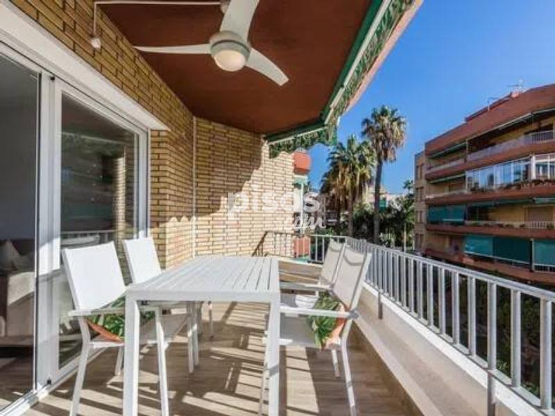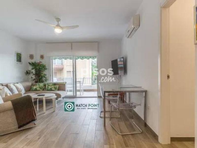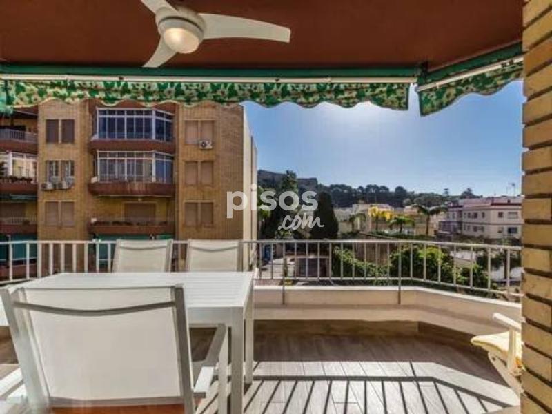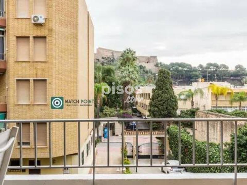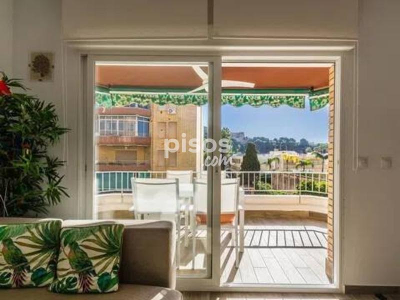 A menos de 200 metros de la playa de San Cristóbal, en urbanización cerrada, con preciosas zonas comunes y jardines, con área de aparcamiento comunitario privado y con un parking público a 10 metros, con piscina y pista de tenis, vistas al magnífico Castillo de San Miguel, con sol de mañana, ofrecemos este precioso piso, completamente reformado, con una bonita terraza, salón con aire acondicionado, cocina semiamericana, 2 dormitorios, uno de matrimonio y el otro de dos camas, con ventiladores de techo, armarios empotrados, 1 baño principal y 1 aseo. Disponible en alquiler Abril y Mayo 2026.