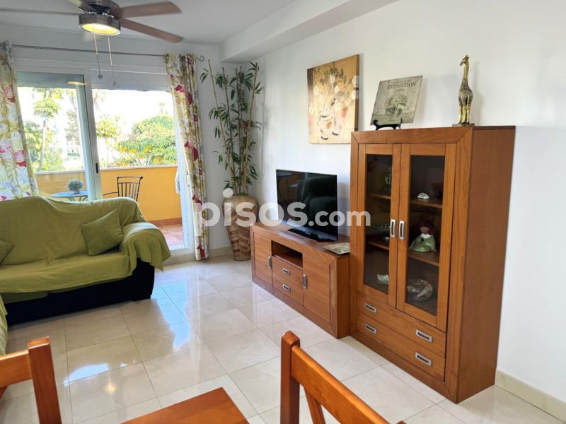 Este piso cuenta con 2 dormitorios, uno de ellos en suite, 2 baños, armarios empotrados, cocina totalmente equipada, salón independiente, terraza y plaza de aparcamiento, orientado al este, cuenta con sol de mañana. Muy amplio y espacioso, muy bien equipado y decorado, con muy buenas calidades, cuenta con grandes jardines comunitarios, pista de tenis y piscina.