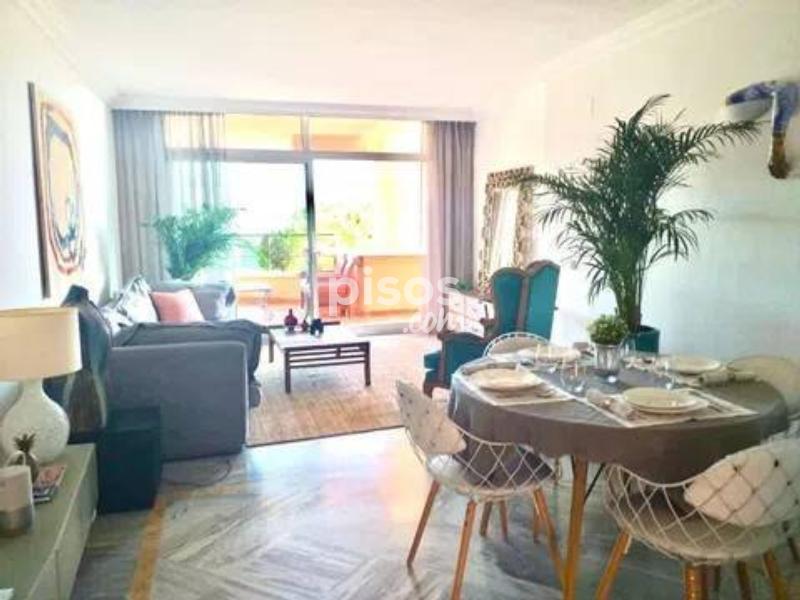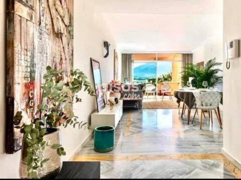 Luz y comodidad en Marbella: tu apartamento con sol y servicios Descubre esta fantástica oportunidad de vivir en una ubicación privilegiada de Marbella, disfrutando de la luz, el confort y la calidad de vida de la Costa del Sol. Este apartamento es ideal para quienes buscan una residencia permanente o una inversión de alta rentabilidad. Este espacioso y luminoso apartamento, ubicado en una planta intermedia con ascensor, cuenta con dos dormitorios y dos baños completos. Con una superficie habitable de 104 m² y un total construido de 157 m², el diseño ofrece un salón-comedor amplio y acogedor, que se abre a una soleada terraza, perfecta para disfrutar del clima mediterráneo. La cocina está totalmente equipada y la propiedad se ofrece amueblada, incluyendo armarios empotrados y aire acondicionado con calefacción eléctrica individual. Su orientación suroeste asegura luz natural abundante todo el día. El precio incluye, además, una plaza de aparcamiento y un trastero, un extra de comodidad y seguridad. El apartamento se encuentra dentro de una urbanización cerrada que ofrece un ambiente tranquilo y bien mantenido. La comunidad cuenta con una piscina y jardines paisajísticos exuberantes, el entorno perfecto para relajarse y disfrutar al aire libre durante todo el año. La seguridad de la urbanización añade un gran valor a la propiedad. La ubicación en Marbella garantiza la proximidad a todas las comodidades. Estarás a un corto paseo de supermercados, colegios, restaurantes y con fácil acceso a la playa. Esta área combina perfectamente la vida residencial con la conveniencia de tener todos los servicios esenciales a tu alcance, consolidando esta propiedad como una elección inteligente para cualquier estilo de vida.