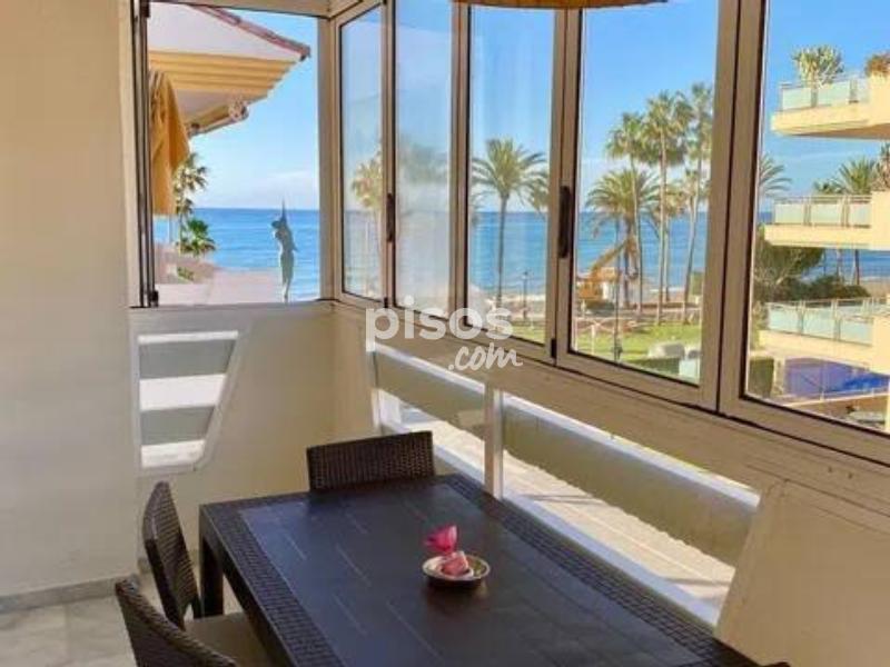 ¡Espectacular apartamento con vistas al mar! (sin muebles) Ubicado en una de las zonas más prestigiosas de Marbella, este encantador hogar se sitúa frente al paseo marítimo de San Pedro de Alcántara, ofreciendo un entorno maravilloso para disfrutar durante todo el año. La propiedad consta de 3 dormitorios y 2 baños completos, además de una amplia cocina totalmente equipada con lavadero independiente. La luminosa sala de estar y comedor brinda acceso a una magnífica terraza cerrada con impresionantes vistas al mar. Destacándose por su ubicación inmejorable, este apartamento se encuentra a pocos pasos de la playa y ofrece un excelente acceso a una variedad de servicios, restaurantes y chiringuitos de la zona. El inmueble también incluye una plaza de aparcamiento subterráneo para mayor comodidad. La urbanización cuenta con jardines bien cuidados y una piscina comunitaria, añadiendo un toque de tranquilidad y confort al estilo de vida costero.