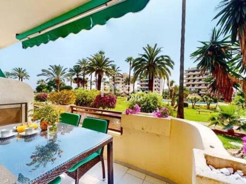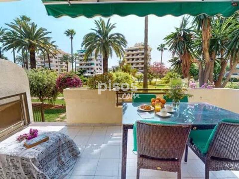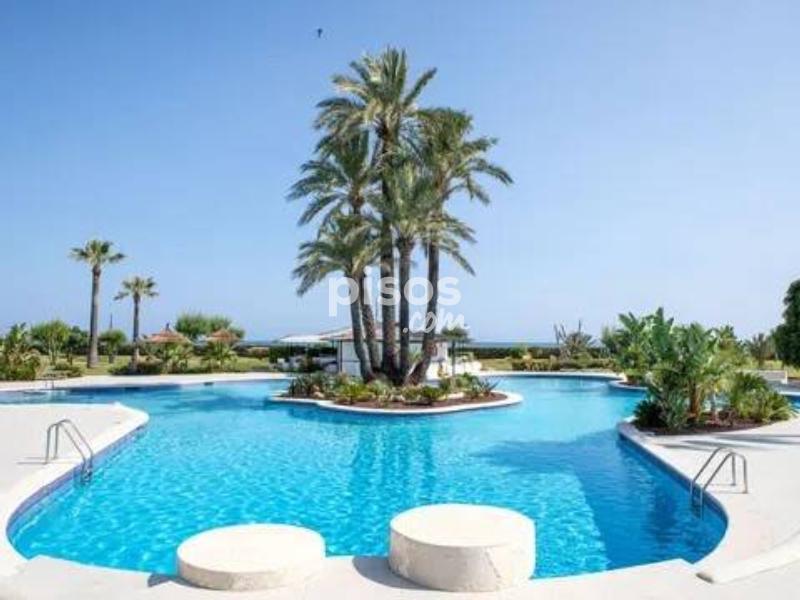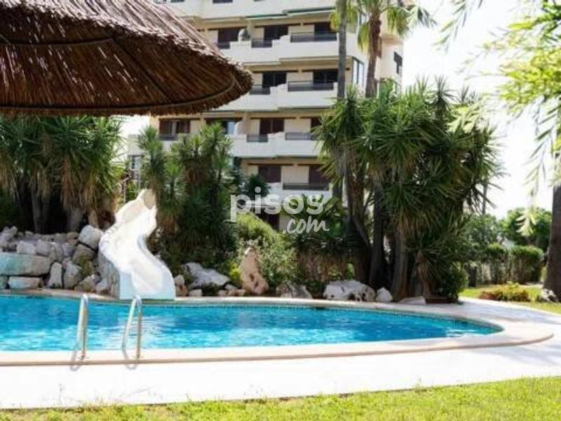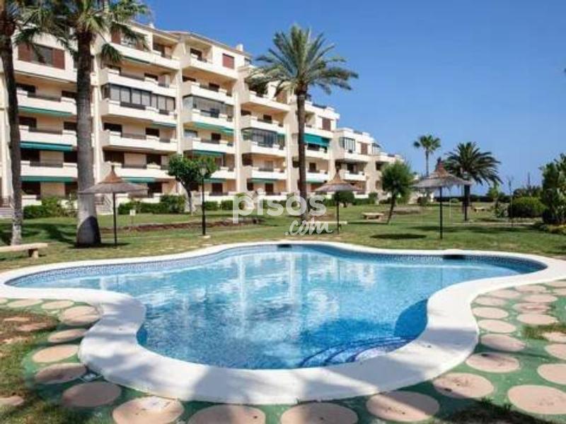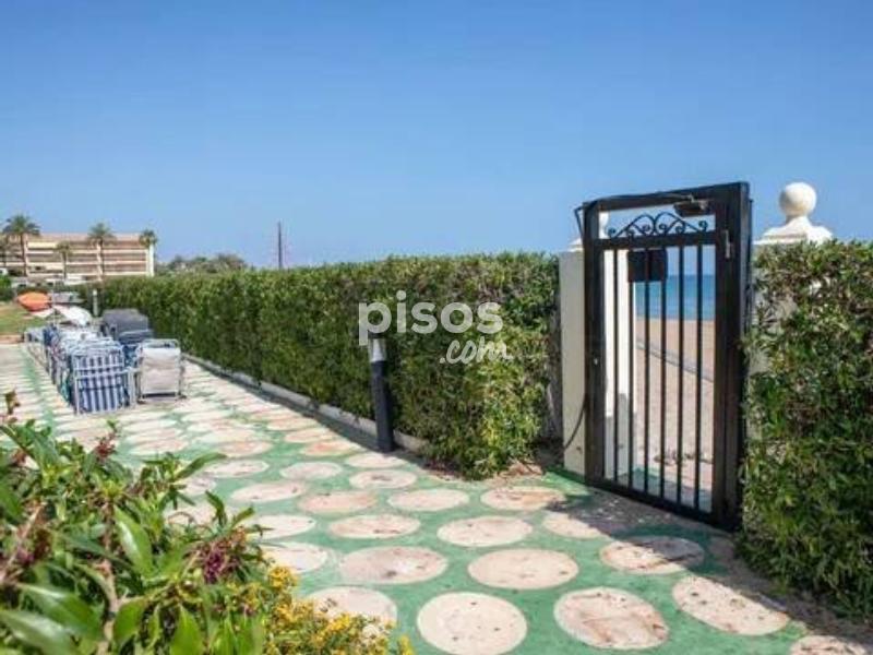 ALQUILER TEMPORAL. Disponible hasta el 31 de mayo 2026. El precio incluye gastos de comunidad, wifi y parking (Plaza no asignada). Excluye consumos de electricidad, gas y agua. Ubicado en la exclusiva Urbanización Playa Grande, este apartamento de planta baja se encuentra en primera línea de playa, a tan solo unos pasos del mar. Con capacidad para hasta 6 personas, es ideal para aquellos que buscan confort y acceso directo a la playa. El apartamento está diseñado para ofrecer comodidad y funcionalidad. Cuenta con una cocina independiente completamente equipada, además de una galería. Disfrutarás de aire acondicionado en todas las habitaciones y en el amplio salón-comedor, que tiene acceso directo a la terraza y a las zonas comunes. El espacio se complementa con tres cómodas habitaciones: una con cama de matrimonio, una con dos camas individuales (una de ellas nido) y otra con dos camas individuales, perfectas para adaptarse a tus necesidades. Además, ofrece dos baños, uno con bañera y otro con ducha. Uno de los mayores atractivos del Apartamento Duna en Dénia es su impresionante terraza de 24 m2, completamente amueblada y con vistas al jardín y al mar. Es el lugar perfecto para relajarte después de un día de playa, disfrutar de las vistas o compartir una cena al aire libre. La urbanización ofrece todo lo que necesitas para unas vacaciones relajantes: acceso directo a la playa mediante llave, extensas áreas ajardinadas, tres piscinas (una de ellas infantil y otra con tobogán), un chiringuito privado, un parque infantil y servicio de conserjería durante todo el año. La Urbanización Playa Grande es un espacio perfecto para descansar, disfrutar en familia y vivir la auténtica experiencia costera. No pierdas la oportunidad de disfrutar de unas vacaciones en denia en este fantástico apartamento en primera línea de playa.