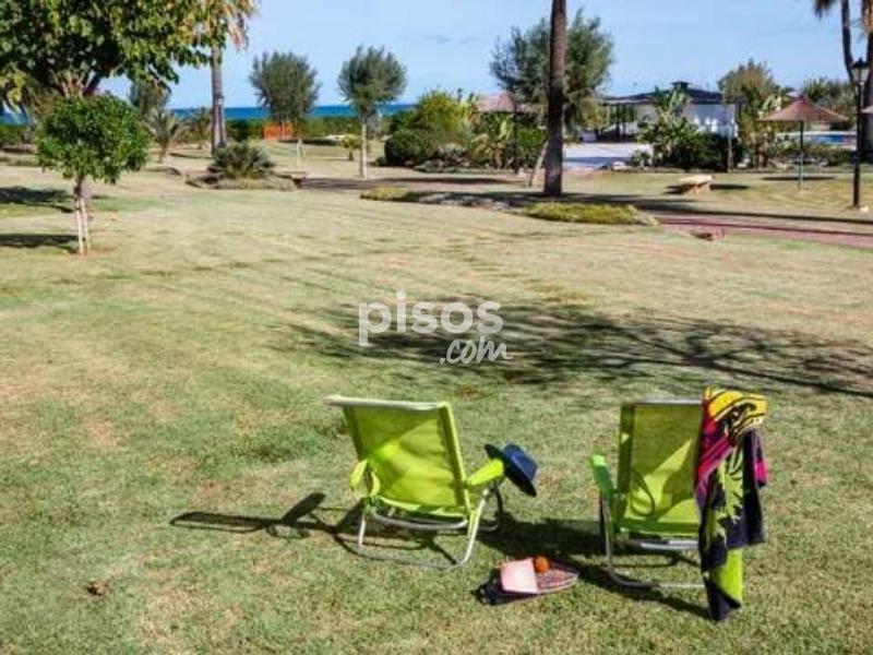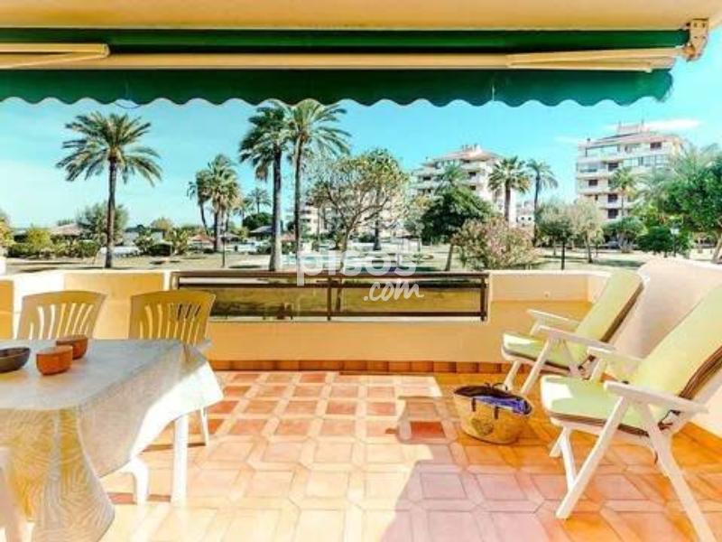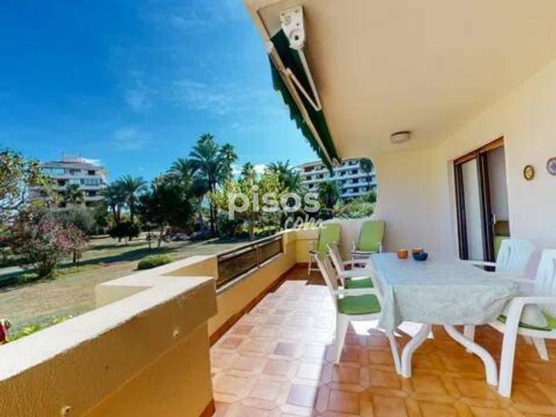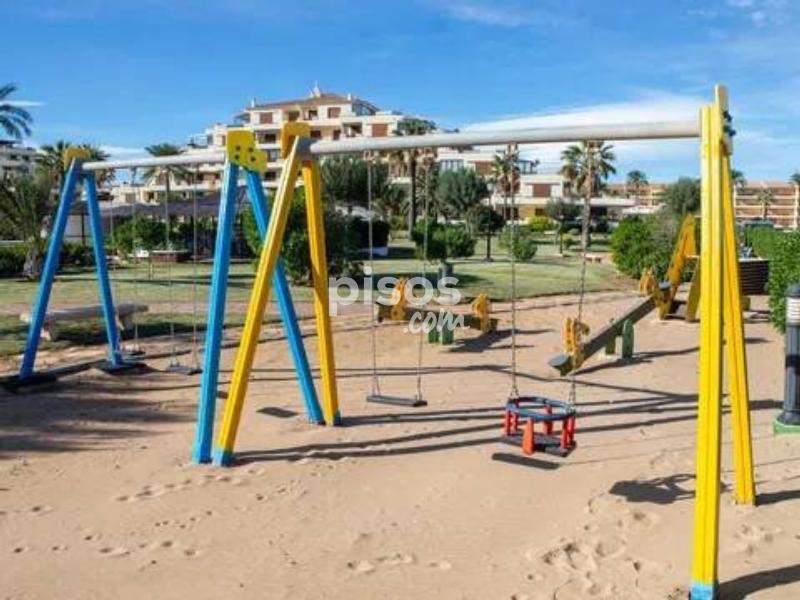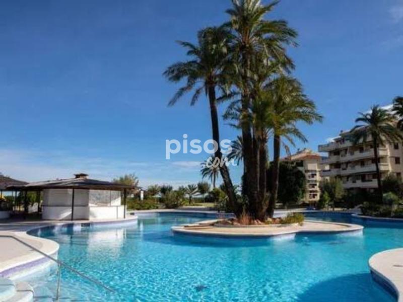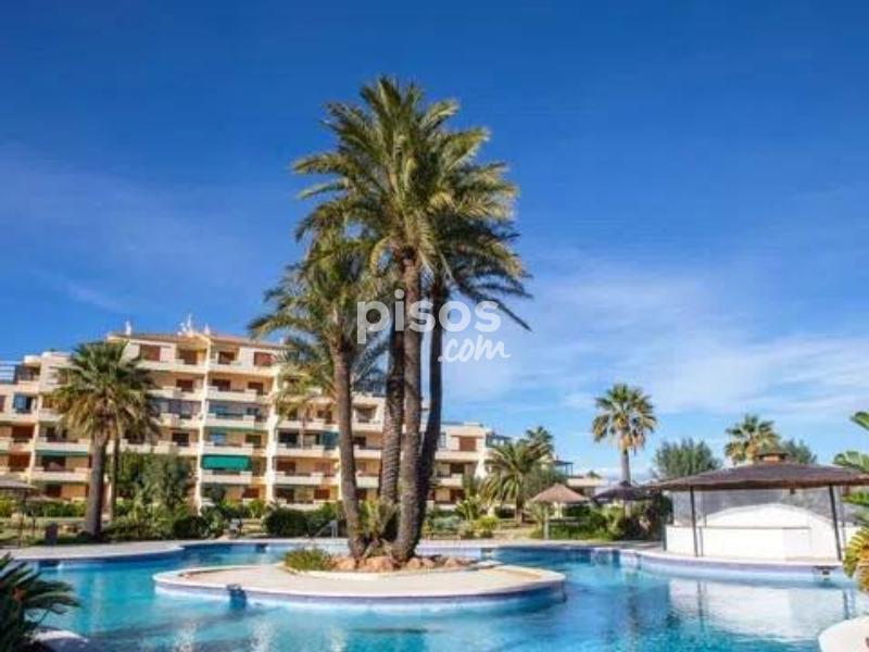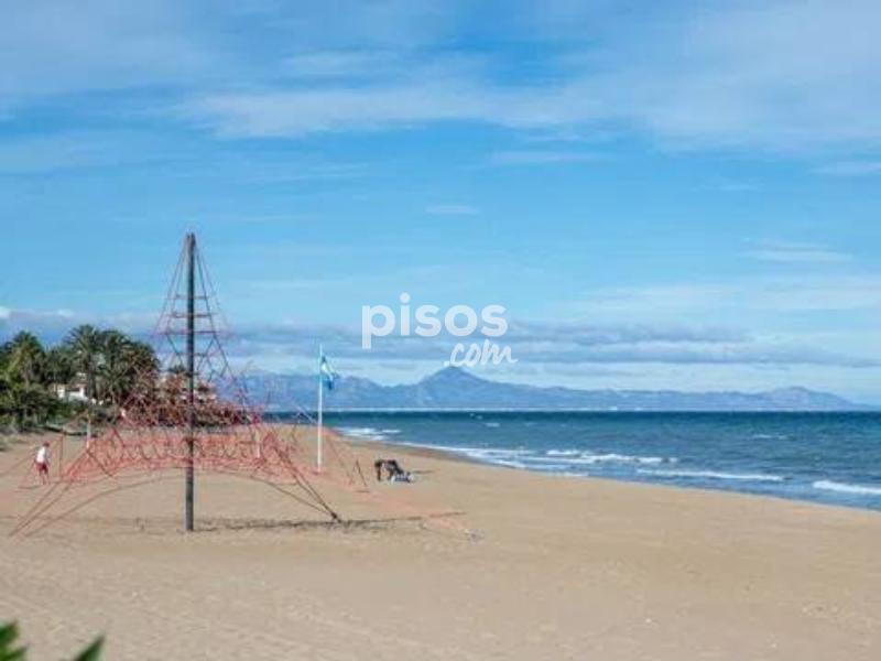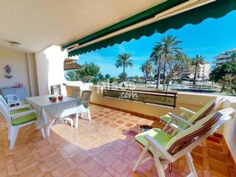 ALQUILER TEMPORAL. Disponible hasta el 31 de mayo 2026. El precio incluye gastos de comunidad, wifi y parking (Plaza no asignada). Excluye consumos de electricidad, gas y agua. Este encantador apartamento en planta baja está ubicado en una exclusiva urbanización de lujo, en primera línea de playa en la zona de las Marinas. Con capacidad para hasta 4 personas, es perfecto para disfrutar con la familia. El apartamento tiene una habitación con cama de matrimonio (2×2 m). También hay una habitación con dos camas individuales, una de ellas es nido. Hay un baño con bañera y una cocina independiente con galería. Además, el apartamento tiene una magnífica terraza de 30 m², completamente amueblada, desde donde podrás disfrutar de unas impresionantes vistas al jardín y al mar. Sin duda, el lugar perfecto para relajarte y desconectar. Playa Grande en Dénia no solo te ofrece un apartamento cómodo, sino también una urbanización de lujo con todo tipo de comodidades. El lugar tiene acceso directo a la playa con llave. Hay amplias zonas ajardinadas y tres piscinas. Una piscina es infantil y otra tiene tobogán. También hay un chiringuito privado y un supermercado. Hay un parque infantil y un conserje todo el año. ¡Una experiencia completa a pie de playa! No pierdas la oportunidad de disfrutar de unas vacaciones inolvidables en Playa Grande en Dénia.