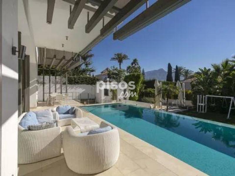 Exclusiva Villa Moderna con Jardín y Piscina Climatizada, Ideal para Familias Moderna y hermosa casa independiente, construida en 2016, diseñada como un espacio ideal para el disfrute de la vida familiar, ofreciendo piscina climatizada y una gran terraza soleada. Su ubicación privilegiada, rodeada de campos de golf, garantiza un rápido acceso a todos los servicios. La vivienda cuenta con una generosa superficie construida de 350 m² sobre una parcela de 800 m², distribuidos en 5 amplias habitaciones y 5 baños completos, lo que asegura la comodidad para todos sus residentes. Un extra relevante para el confort es la calefacción por suelo radiante que mantiene un ambiente cálido durante todo el año. La propiedad incluye un espacioso garaje con capacidad para 4 coches. Como propiedad independiente, se presenta como un refugio privado donde se puede desconectar y disfrutar de la tranquilidad. Sus áreas exteriores están pensadas para el disfrute, con una amplia terraza diseñada para aprovechar el sol y un jardín que ofrece un ambiente de desconexión. La joya es su piscina climatizada propia, perfecta para el relax. No pierda la oportunidad de conocer este hogar que combina comodidad, privacidad y una ubicación excelente junto a campos de golf. ¡Contacte ahora para organizar su visita y enamórese de su nuevo hogar!