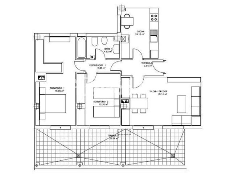 La vivienda, situada en la séptima planta del edificio, con doble orientación, se distribuye en: 2 dormitorios con armarios empotrados, amplios y totalmente vestidos. Salón-comedor de aproximadamente 20,54 m², luminoso y con un gran ventanal. Cocina independiente, amplia y completamente equipada con los electrodomésticos esenciales. Baño completo con bañera. Una terraza orientada al sur de 28,56 m2. Entre sus calidades destacan: suelos de tarima, calefacción individual de gas natural, aire acondicionado en salón, puertas de madera y ventanas de aluminio con Climalit, que garantizan confort, eficiencia y un excelente aislamiento térmico y acústico. El alquiler incluye dos plazas de garaje y un trastero en el precio. El barrio de Las Tablas se ha consolidado como una de las zonas más demandadas de Madrid, ideal para familias y profesionales que buscan tranquilidad sin renunciar a la conexión con el centro. Su ubicación es inmejorable, rodeada de todos los servicios necesarios para el día a día: supermercados, farmacias, centros educativos (guarderías, colegios e institutos), centros de salud, instalaciones deportivas, parques, zonas verdes y proximidad a centros comerciales. Además, cuenta con excelentes comunicaciones: