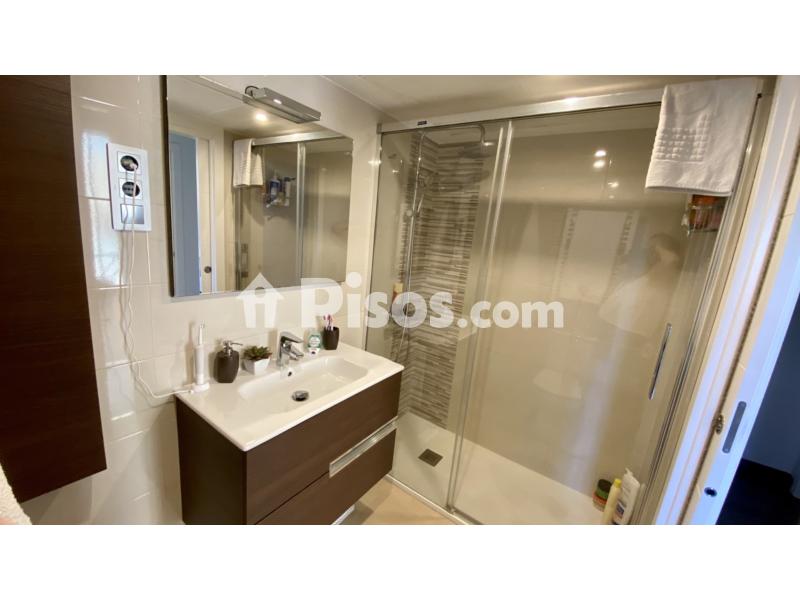 •1 baño con ducha (columna monomando, termoestática), sanitario, lavabo y mueble Roca