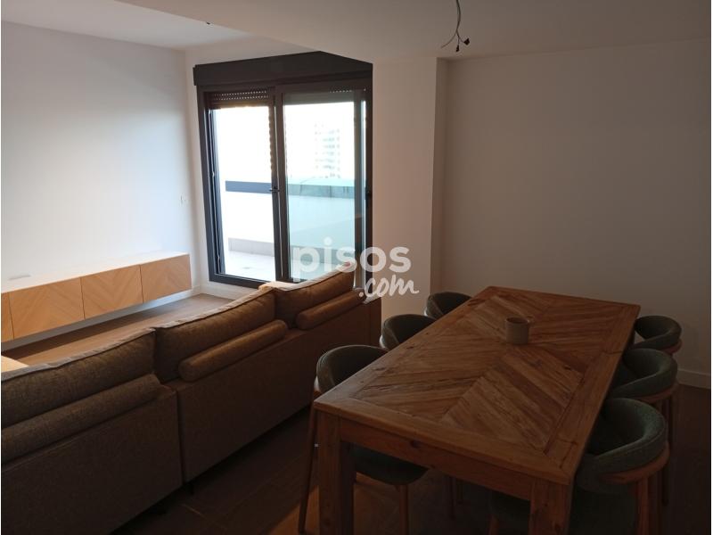 En la zona de Entrenúcleos, se encuentra este espectacular piso en un 7º piso con un total de 113 m². Con una distribución de 3 habitaciones, 2 baños y una amplia terraza de 10 m², este inmueble destaca por su moderno diseño y excelentes acabados. La vivienda cuenta con aire acondicionado, calefacción por aerotermia, armarios empotrados, suelos de tarima flotante y una cocina totalmente equipada. Además, el edificio dispone de magníficas zonas comunes, como jardín, piscina, Gimnasio equipado, sala gurmet, parking y trastero. ¡No pierdas la oportunidad de vivir en este maravilloso lugar!
