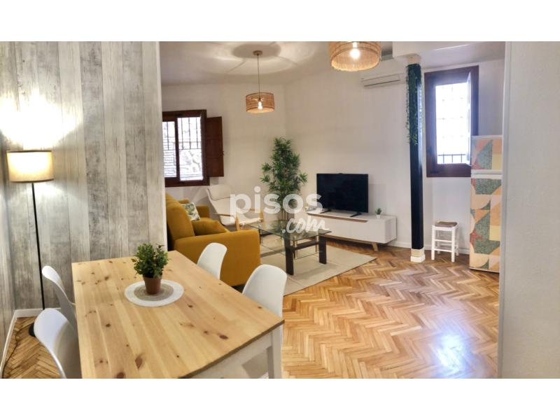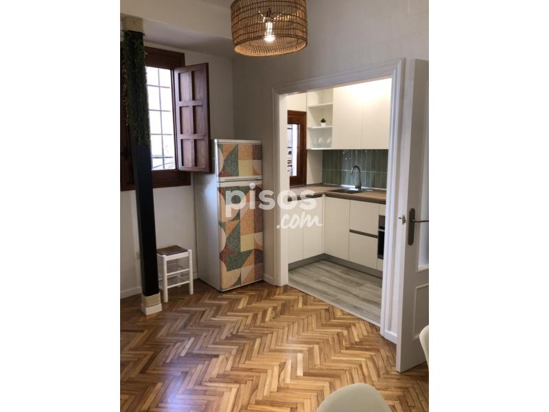 Precioso y acogedor piso reformado con cocina prácticamente nueva (con horno, lavavajillas, microondas, placa vitrocerámica y campana), baño, amplio dormitorio con armarios empotrados y salón comedor con sofá cama. Aire acondicionado frÃo/calor. Ubicado en pleno casco histórico de Toledo, en plaza de san Justo. Cerca de supermercados, conservatorio, centro de estudios Internacionales y Catedral.