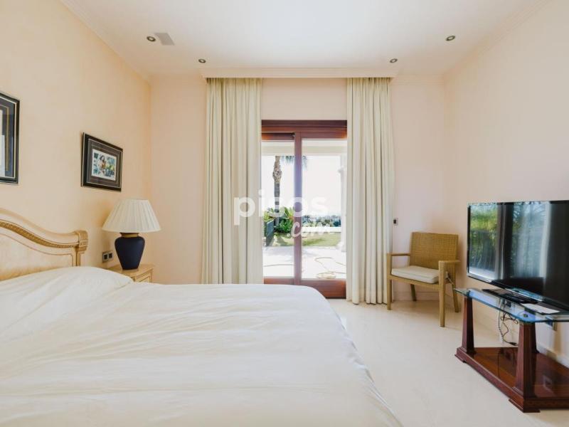 La planta alta cuenta con dos amplias suites principales, cada una con baño privado y vestidor en suite. Ambas habitaciones están decoradas con mobiliario de primera calidad y se abren a un balcón perimetral que rodea la planta, desde donde se disfrutan espectaculares vistas al mar y al entorno natural.