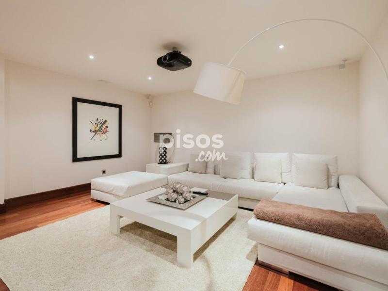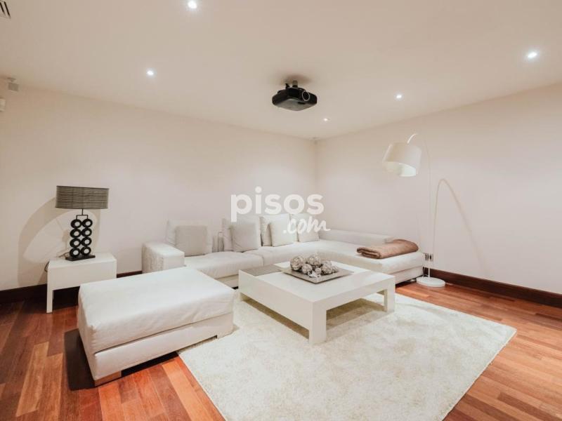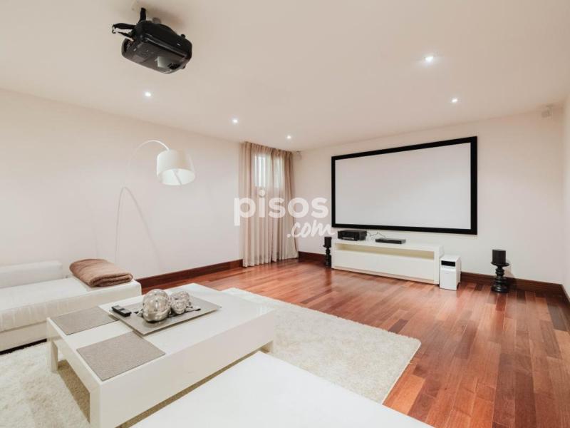 Diseñada para el ocio, el bienestar y la funcionalidad, la planta inferior alberga una sala de cine con proyector, un gimnasio completamente equipado, sauna, bodega y dos amplias habitaciones con baño en suite, ideales para invitados o personal. También dispone de un garaje privado con acceso directo al interior de la vivienda, con capacidad para varios vehículos.