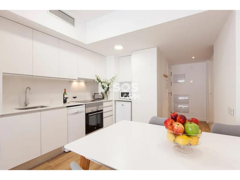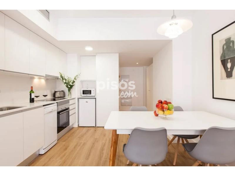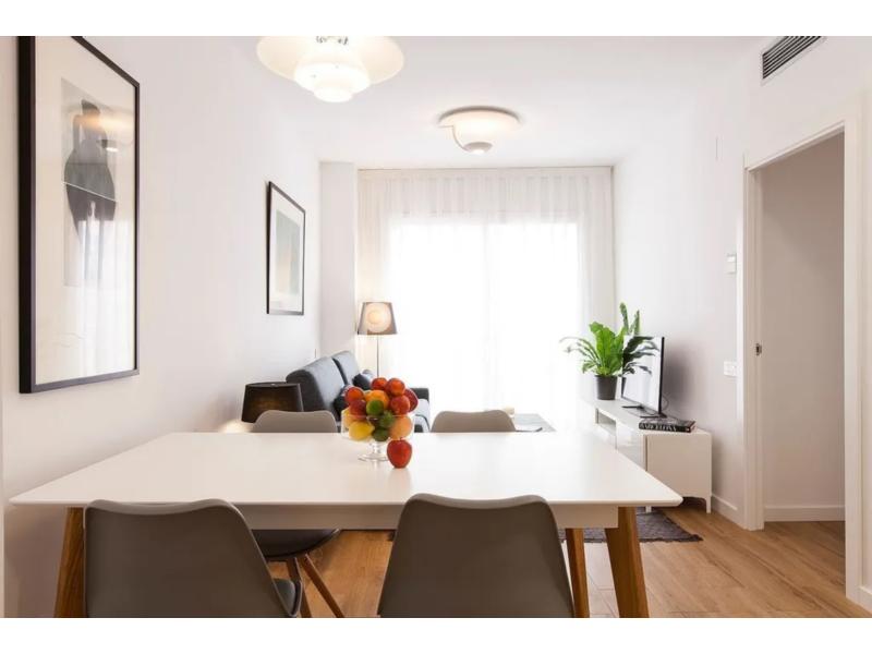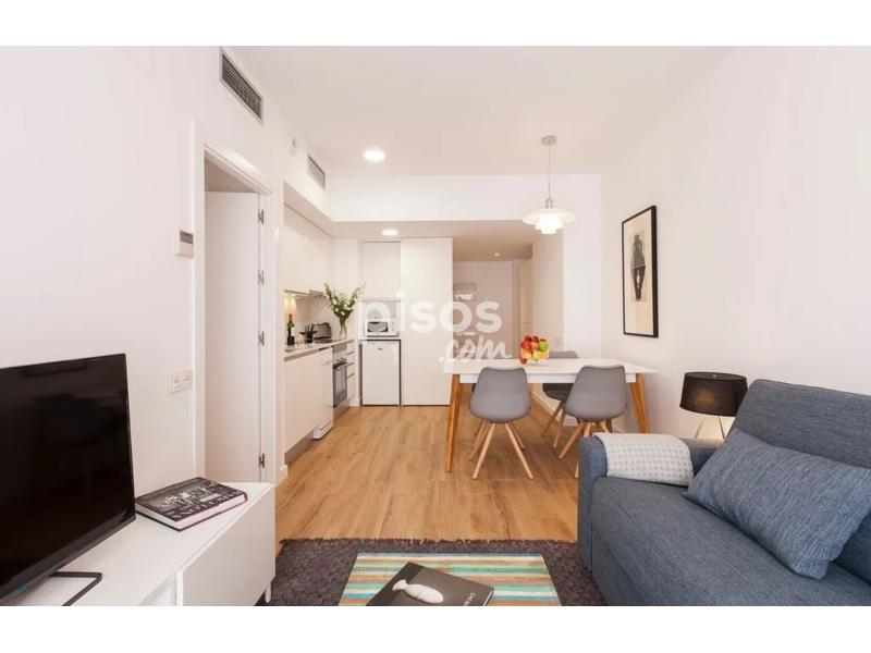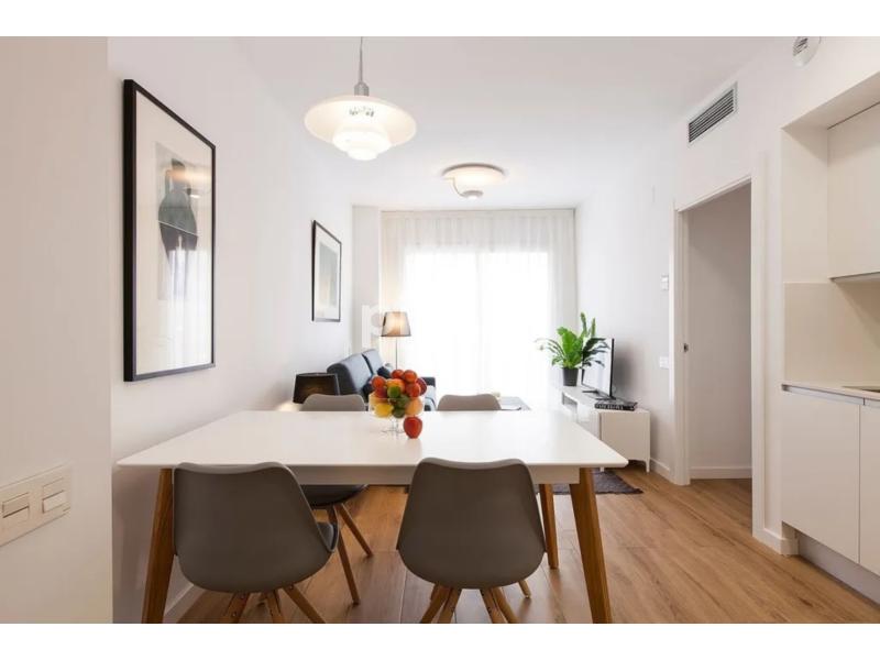 Apartamento luminoso y funcional de dos dormitorios, totalmente equipado, suelo de parquet, mobiliario de diseño y piscina y solárium en el terrado.El apartamento dispone de un luminoso salón-comedor con mesa para cuatro personas. La cocina americana está perfectamente equipada y ofrece todas las comodidades necesarias para su estancia. Cuenta con dos dormitorios, ambos con gran armario, uno con cama matrimonial y el segundo con cama individual y un escritorio.El cuarto de baño cuenta con un plato de ducha.Adicionalmente, el apartamento dispone de aire acondicionado y finca en el ascensor.