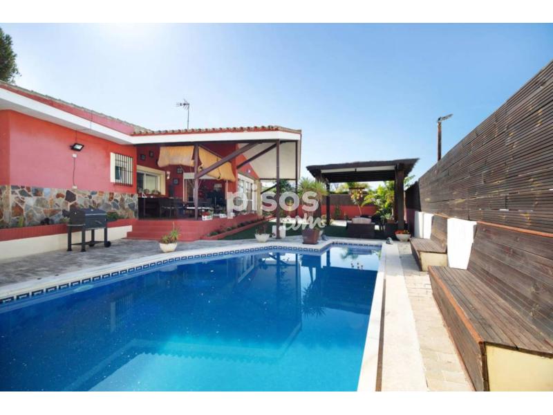La casa cuenta con piscina privada, bañera de hidromasaje, 2 terrazas cubiertas y zona de barbacoa para su disfrute.