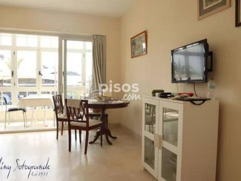 ALQUILADO HASTA SEPTIEMBRE 2.026 Encantador estudio en alquiler en Puerto Sotogrande con vistas al mar (Larga estancia) Ubicado en el corazón de Puerto Sotogrande, este luminoso estudio de 49 m² ofrece una excelente oportunidad tanto como residencia vacacional como para estancias prolongadas. Disfrute de unas vistas privilegiadas al astillero y al mar desde su balcón acristalado con puertas correderas y doble acristalamiento, ideal para relajarse en cualquier época del año. La propiedad se encuentra a tan solo 2 minutos a pie de la playa y a escasos pasos de exclusivos restaurantes, bares y tiendas, ofreciendo una ubicación inmejorable. El estudio está completamente amueblado y dispone de una funcional cocina, un baño de generosas dimensiones y acabados de calidad como suelos de mármol. Cuenta además con puerta de seguridad blindada, videoportero y un ambiente acogedor que lo convierte en un lugar perfecto para disfrutar del estilo de vida mediterráneo. Condiciones de alquiler: Se requiere garantía de pago de la renta anual completa, a través de aval bancario o seguro de impago de alquiler.