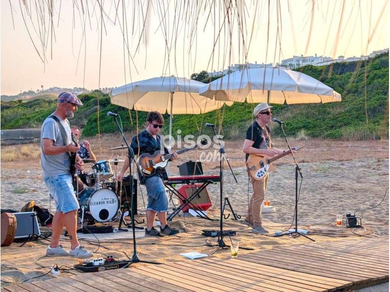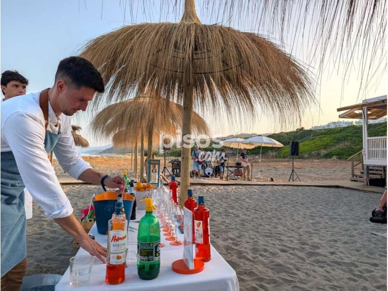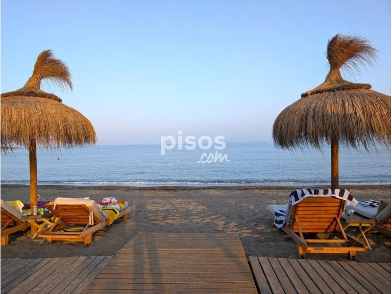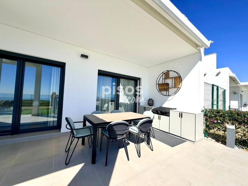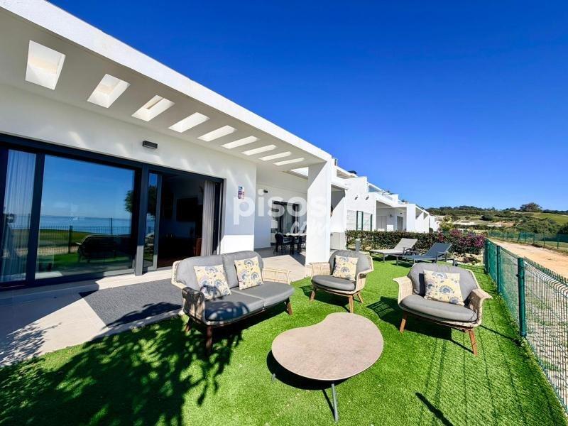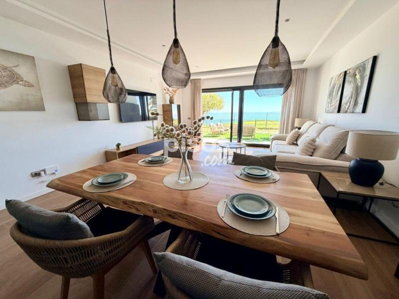 Terraza techada con gran toldo y jardín privado en primera Línea