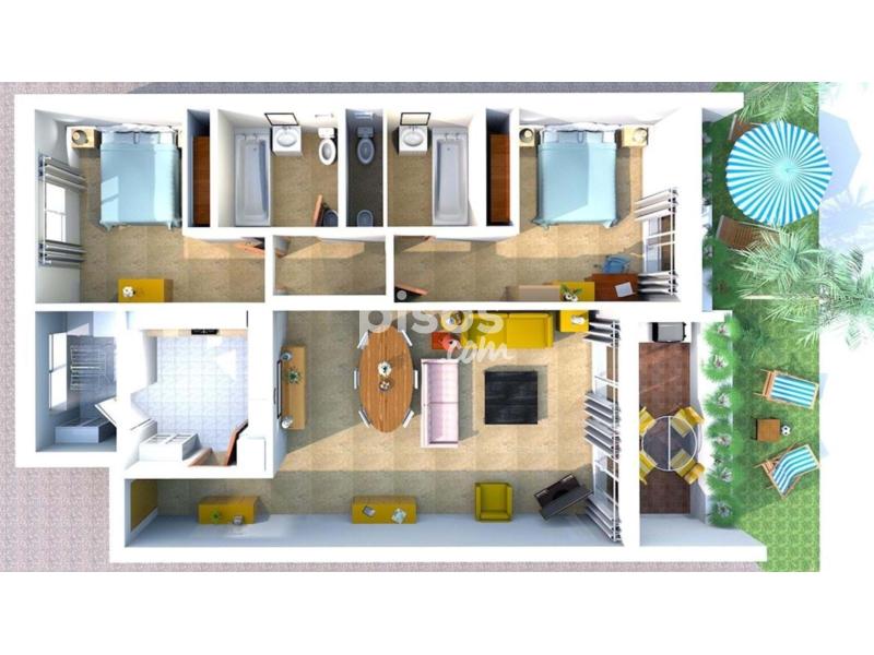 Con 130 m² construidos y una terraza privada de 20 m², el apartamento cuenta con un amplio y luminoso salón, perfecto para relajarse o entretenerse, así como una cocina totalmente equipada con todos los electrodomésticos necesarios para el día a día. Ambos dormitorios son amplios y el principal incluye baño en suite. El apartamento está terminado con buen gusto y listo para entrar a vivir.
