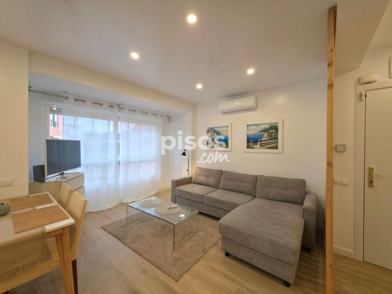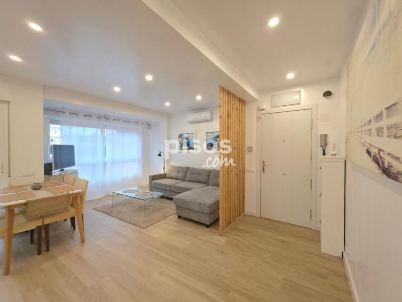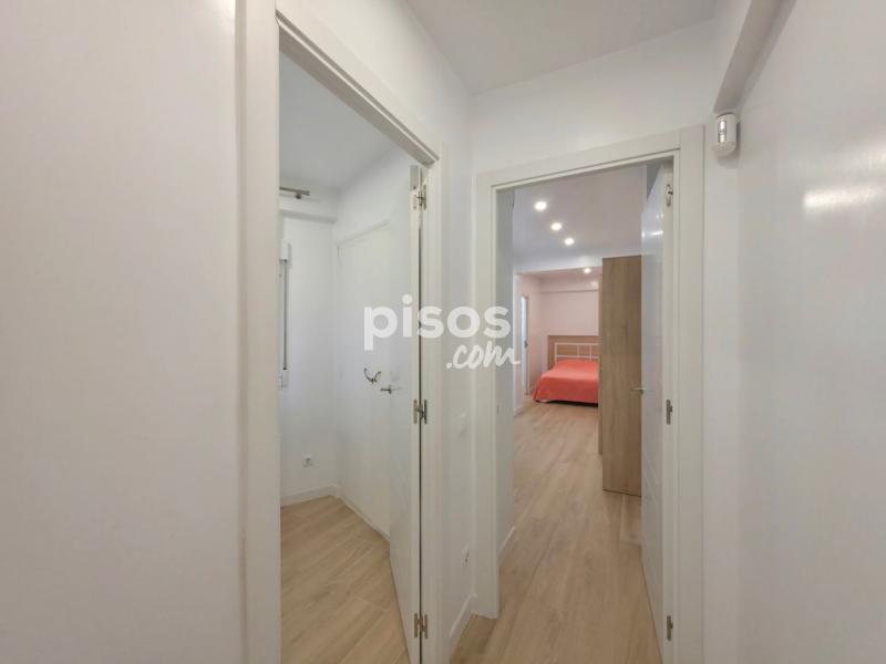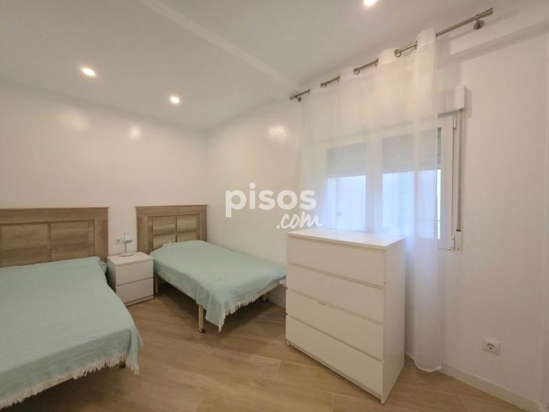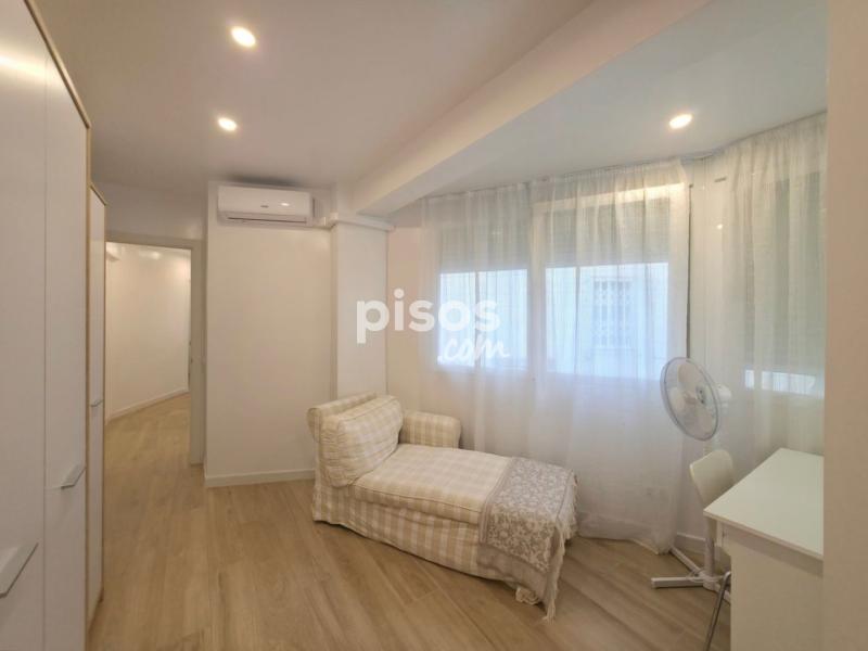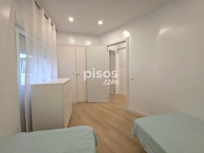 Se alquila amplio piso, talmente reformado. Al entrar a la vivienda nos encontramos con un amplio salón comedor con cocina americana con galería y con terraza de unos 5m2 con vistas a la plaza PiuXII. A continuación se encuentra primer baño completo con plato de ducha. Un dormitorio doble con dos camas individuales y un armario empotrado. Segundo dormitorio tiene baño en suite y zona de estar. Cocina americana, equipada con nevera, lavavajillas, vitro, horno y microondas. Galería/trastero con lavadora y espacio para almacenaje. Pintura lisa, 2 maquinas de aire acondicionado frío calor, techos con aislamiento térmico, ventanas de PVC nuevas oscilobatientes con persianas, iluminación LED. Internet. Alarma Seguritas Direct con aviso a policía y grabación de imágenes. Totalmente amueblado. Ultima cuarta planta con ascensor. Terraza comunitaria en la cubierta. Imprescindible demostrar la solvencia. Se requiere un mes de fianza y un mes de garantía adicional. Solicita tu cita para visitar esta propiedad llamando a 6 7 3 8 1 1 5 1 5 o enviando un WhatsApp. WE SPEAK ENGLISH - ?? ??????? ??-?????? - ON PARLE FRANÇAIS - ?? ???????? ??????????? - ME RÄÄGIME EESTI KEELT - MES RUNAJAM LATVIEŠU VALODA Si tienes una vivienda para vender y deseas que aparezca en las primeras páginas de los portales inmobiliarios y en las redes sociales, no dudes en contactarnos sin compromiso.