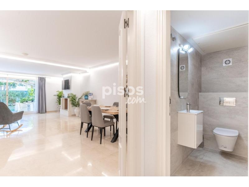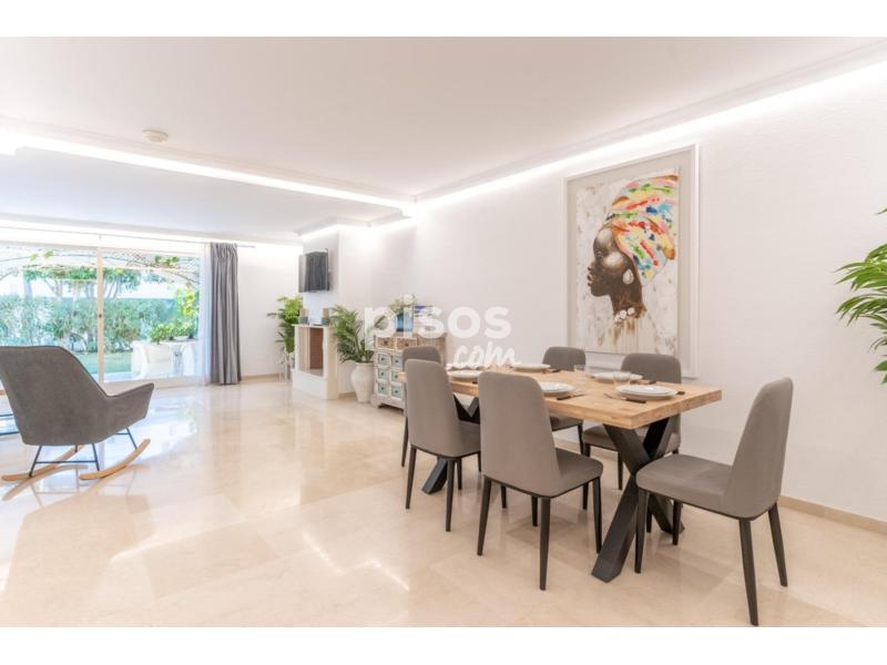 Magnífico Apartamento en la prestigiosa Urbanización Dominion Beach en primera línea de playa con acceso directo a la senda el litoral. Fantásticas piscinas en un resort de lujo donde también podrá encontrar un restaurante / chiringuito con preciosas vistas al mar. El Apartamento cuenta con 132 m. de superficie, 25 m2 de terraza, 2 habitaciones, 2 baños, un aseo, propiedad reformada al más alto nivel y con todo al mobiliario prácticamente a estrenar, orientación sur.