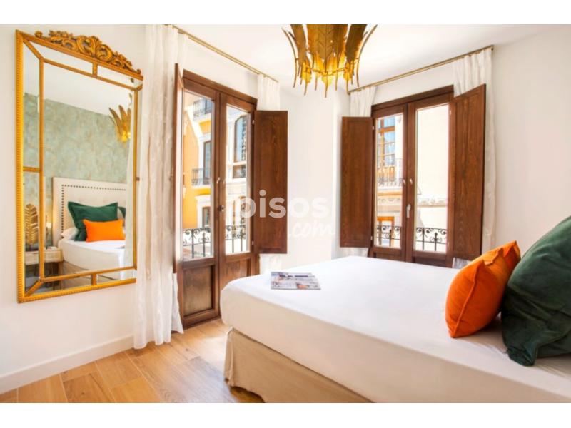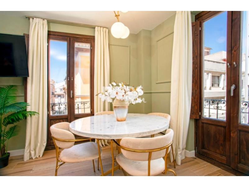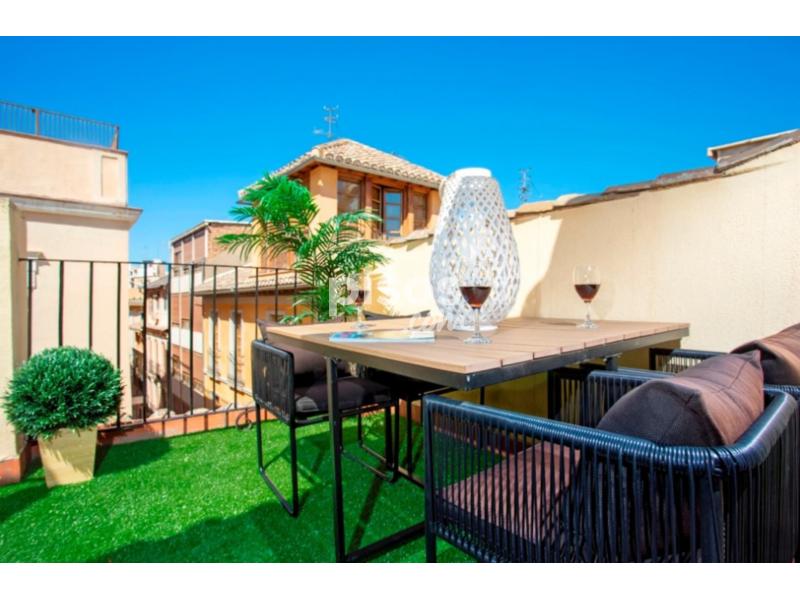 Se trata de un precioso dúplex con dos dormitorios y un baño, con terraza privada, ubicado en un edificio histórico en el centro de Granada, que ha sido completamente restaurado, respetando los elementos arquitectónicos de la fachada. Al entrar en la vivienda accedemos directamente al salón, decorado con mobiliario de calidad y que dispone de un sofá cama de 1,50 cm, mesa auxiliar, sillas y televisor Smart TV de 50 pulgadas. La cocina está abierta al salón y cuenta con todos los utensilios necesarios para que su estancia sea más confortable. Junto a la cocina hay una mesa de comedor con capacidad para 4 personas. Esta estancia es muy luminosa ya que tiene 3 balcones con vistas a la calle Mesones y a la Placeta de Santo Cristo. Junto al salón encontramos el primer dormitorio, muy amplio y luminoso gracias a dos balcones que dan a la calle Mesones y a la calle Caldereros. Dispone de cama de matrimonio de 1,60 x 2 m y un amplio armario empotrado. Junto al dormitorio, y con acceso desde el salón, se encuentra el espacioso baño con ducha. Cuenta además con luz natural gracias a un balcón que da a la calle Caldereros. Subiendo las escaleras, encontramos la terraza privada de la vivienda, que cuenta con mobiliario de exterior con una zona de sillones y una zona de comedor. Justo al lado de la terraza se encuentra el segundo dormitorio, también con cama de matrimonio de 1,60 x 2 m. Es muy luminoso ya que tiene dos ventanas que dan a la terraza. La vivienda dispone de aire acondicionado en ambos dormitorios y en el salón. Además, a pesar de ser completamente exterior, los balcones cuentan con doble ventana, garantizando el descanso. Por tratarse de un edificio histórico, no dispone de ascensor. La zona donde se ubica la vivienda es perfecta para visitar la ciudad a pie, ya que se encuentra en el corazón de Granada, a pocos pasos de los principales atractivos turísticos de la ciudad. Además, la zona cuenta con numerosas tiendas, restaurantes y bares de tapas donde disfrutar de la auténtica gastronomía andaluza.