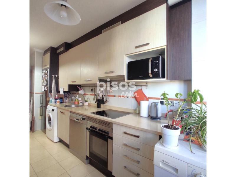 A lo largo del pasillo encontramos la cocina equipada con mueble de cocina, vitrocerámica con horno, lavadora, secadora y lavavajillas, entre otras.