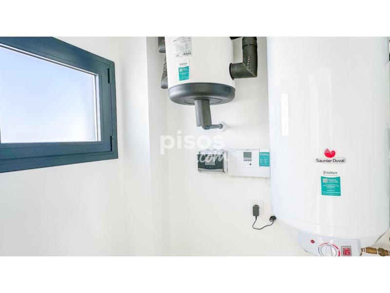 La vivienda incorpora comodidades como aire acondicionado centralizado con bomba de frío/calor, armarios empotrados, sistema de aerotermia, cerramientos exteriores de aluminio con doble acristalamiento con rotura de puente térmico, puerta blindada, suelo porcelánico, etc.