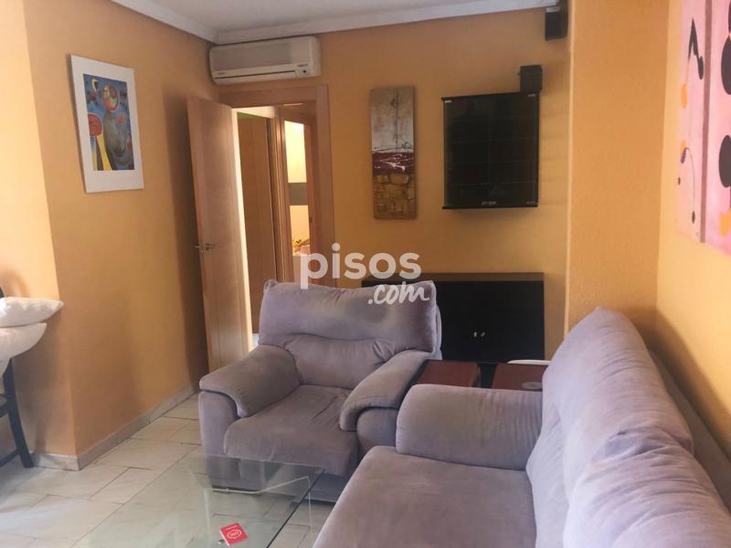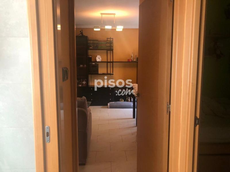 Al entrar en la vivienda tiene un hall amplio decorado con espejo y luego se accede al salón amplio con mueble de salón en color negro y con estanterías, dos sofás de tres y dos plazas y con salida a una terraza amplia que da a la calle.