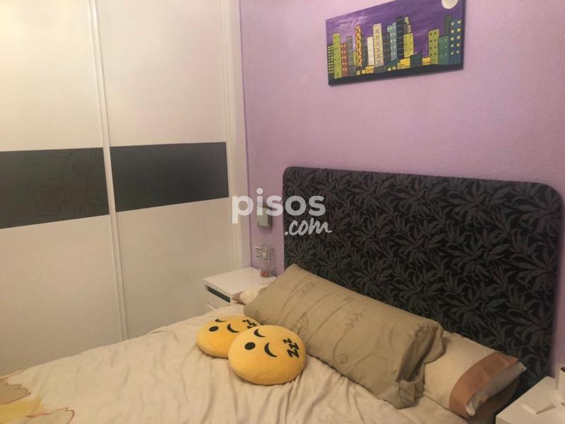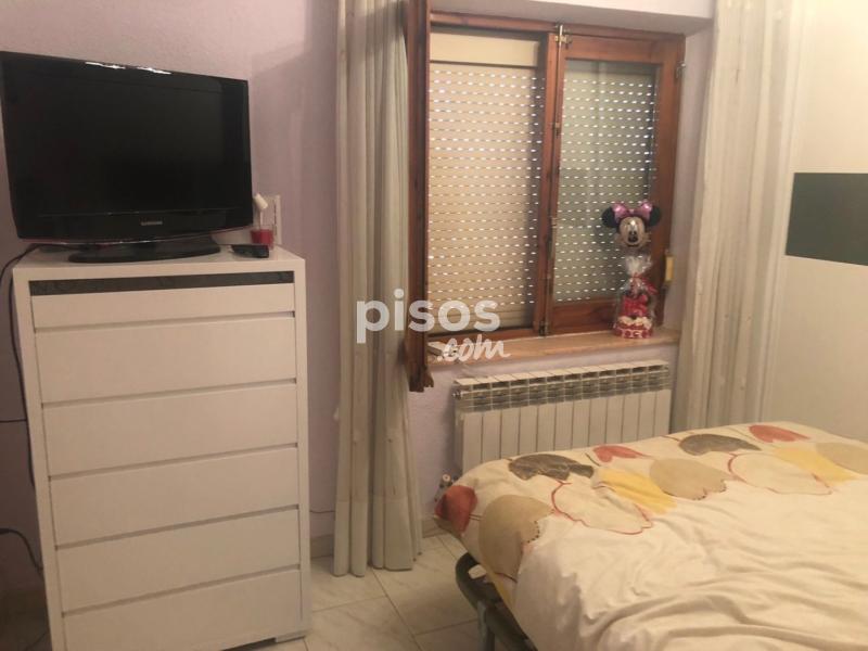 La segunda habitación que tambien da a la calle tiene una cama de 135cm. con armario empotrado de tres puertas correderas en blanco y decoradas con detalles, además tiene un sinfonier y dos mesillas.