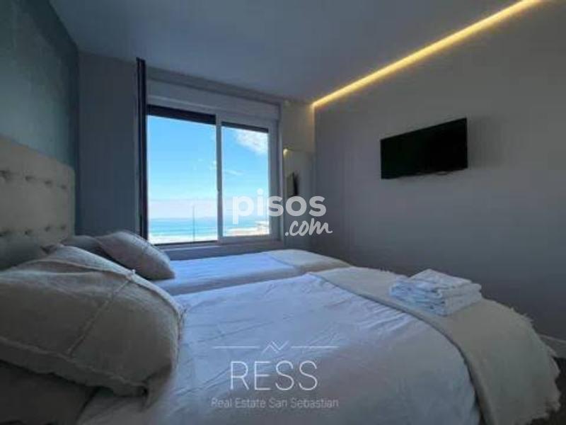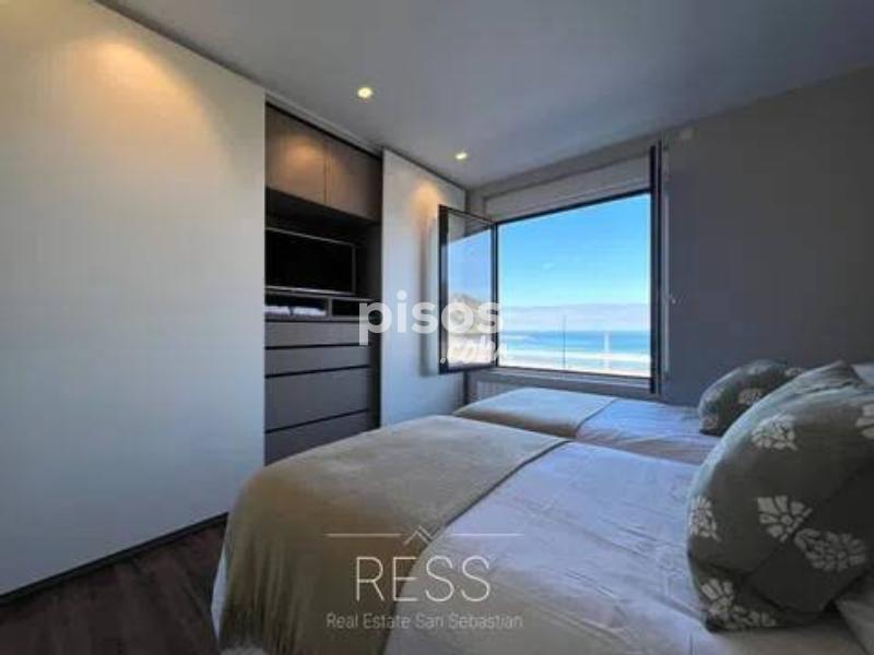 ¡PROPIEDAD DISPONIBLE PARA ALQUILER DE TEMPORADA! ¡DISPONIBLE! Real Estate San Sebastián (RESS) presenta este espectacular inmueble situado en primera línea de la Playa de la Zurriola. Consta de un amplio salón-comedor totalmente exterior con vistas al mar. Está totalmente equipado con muebles de última generación. Un amplio sofá de esquina con dos butacas de diseño. La cocina está totalmente equipada con todo tipo de menaje y electrodomésticos de última generación. La habitación principal dispone de una cama de matrimonio con vistas la playa y un baño en suite. Además de una televisión incorporada. La segunda habitación tiene dos camas individuales, televisión incorporada y vistas frontales al mar. La tercera habitación cuenta con dos camas individuales, y por último la cuarta y ultima habitación tiene una cama de matrimonio. El piso cuenta con dos amplios baños completos con ducha incorporada en cada uno de ellos. ESCRIBENOS con tu búsqueda de alquiler para CONSULTAR la disponibilidad y precio según mes. La fianza será proporcional al plazo de duración del contrato.