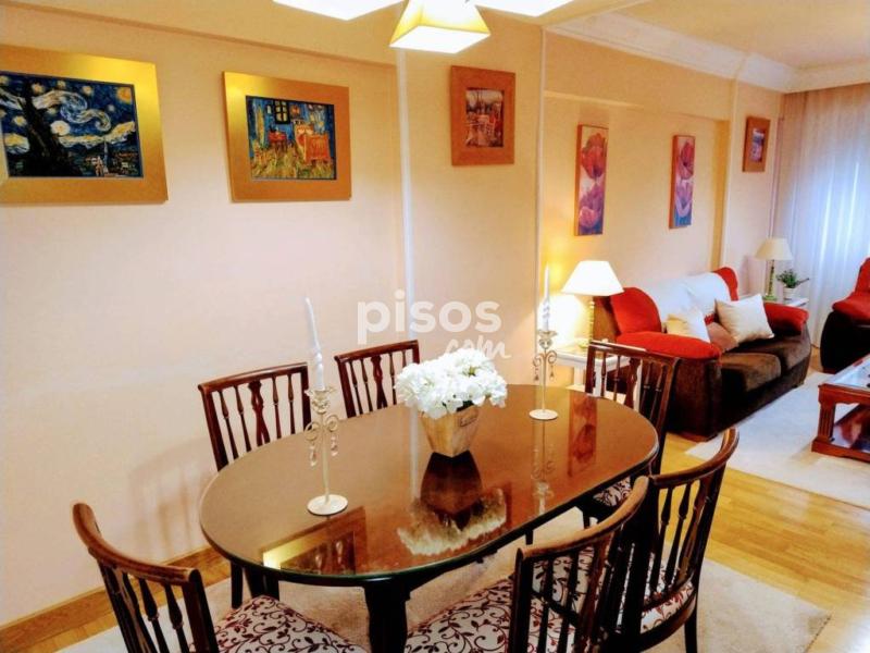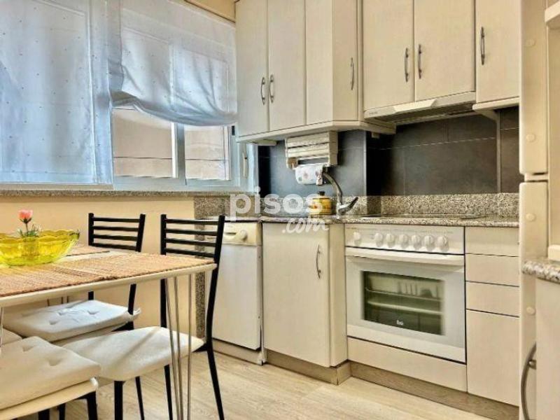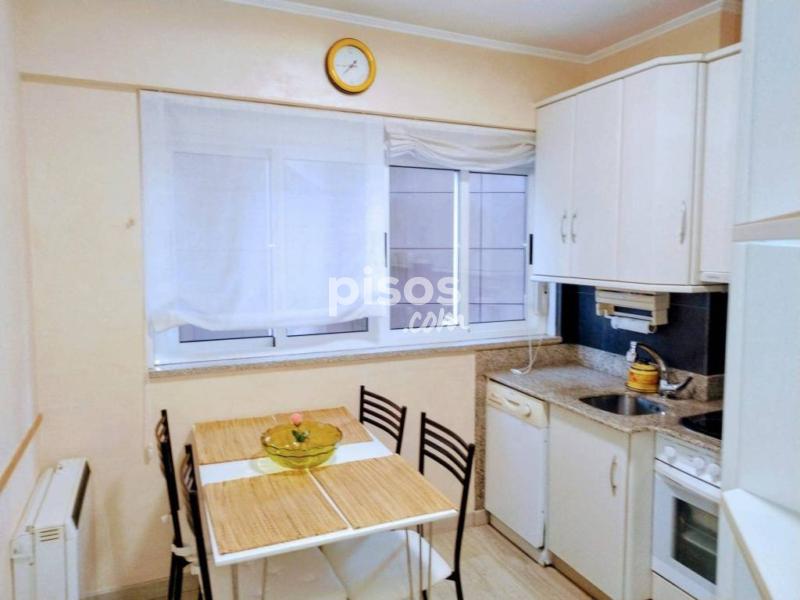 Se alquila piso al lado de a plaza de galicia. Inmueble de 104 metros, amueblado, recibidor, tres habitaciones una doble, vestidor, un baño completo con bañera hidromasaje, cuarto de lavanderÃa, cocina equipada vitroceramica, lavavajilals, nevera combi, salón comedor. Calefaccion electrica con acumuladores. Piso exterior con vistas.