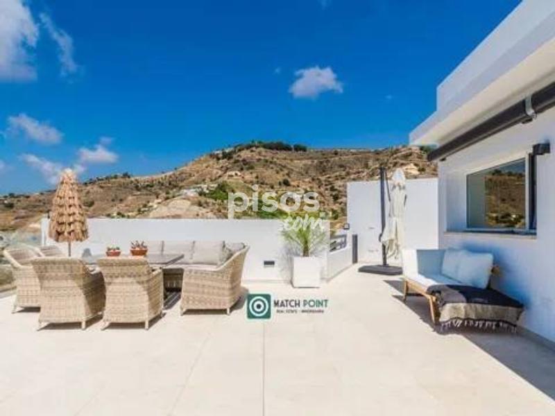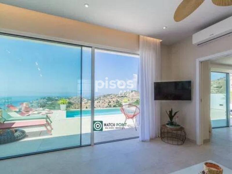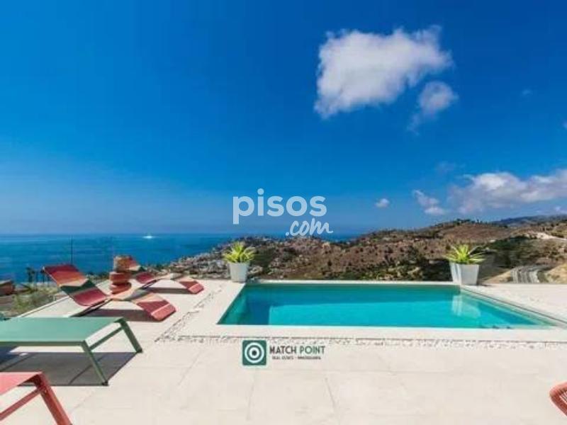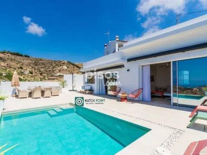 a cinco minutos del centro de Almuñécar y de las playas, en una zona residencial de muy facil acceso, comunicada a cinoc minutos de la autovia A7 que nos lleva a Granada capital en 40 minutos, a Malaga capital en 50, a la estacion de sky en 90 minutos etc se ubica esta preciosa casa recien construida, a estrenar de dos plantas. En la primera planta domina y destaca la espectacular terraza y su piscina, con unas vistas increibles, donde disfrutara de amaneceres y anocheceres de pelicula, por su orientacion sur, con sol todo el dia y unas vistas nocturnas de postal En esta planta tambien tenemos el salon, la cocina y uno de los dos dormitorios en suite, con salida directa a la terraza. En la planta baja tenemos el otro domritorio tambien en suite, con vistas al horizonte, donde disfrutar de esos amaneceres desde la cama. una propiedad excepcional para pasar el invierno, solo disponible de septiembre a junio, teletrabajar o pasar una temporada de absoluto relax. Disponible en alquiler desde Septiembre hasta Junio 2027. No se alquila todo el año.