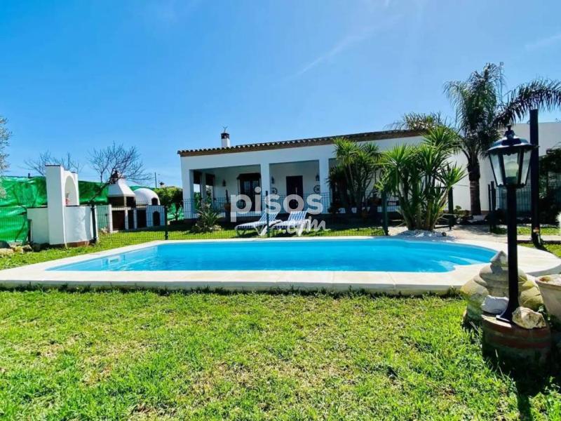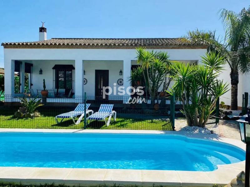 Para larga temporada sólo desde el 1 de octubre del 2026 al 31 de mayo del 2027. El resto es alquiler vacacional con otros precios. Si te interesa manda mensaje escrito por email o whatsapp en el 744717008 porque lo atiendo mejor Casa andaluza muy bien cuidada en la zona de los Pinares de Roche. Tiene 3 habitaciones, 1 de matrimonio y 2 dobles, 2 baños, amplio salón comedor con chimenea y cocina. Totalmente equipada. Porche. Piscina y jardín privados. Barbacoa y horno de leña Situada en la zona Majadales de Roche, rodeado de Pinares. Ideal para desconectar del ruido de la ciudad, naturaleza a pocos minutos en coche de la playa. A 2-3 km de las playas, a 1,5 km del Colorado zona de servicios y a 4 km de Conil centro.