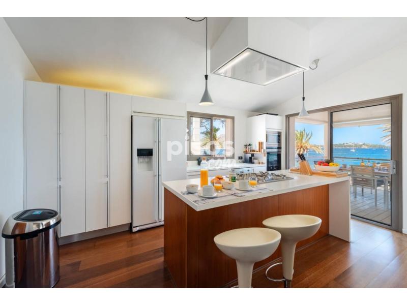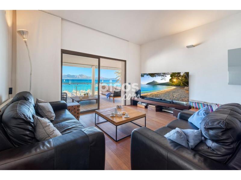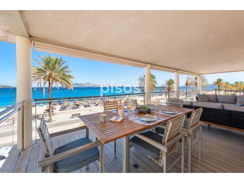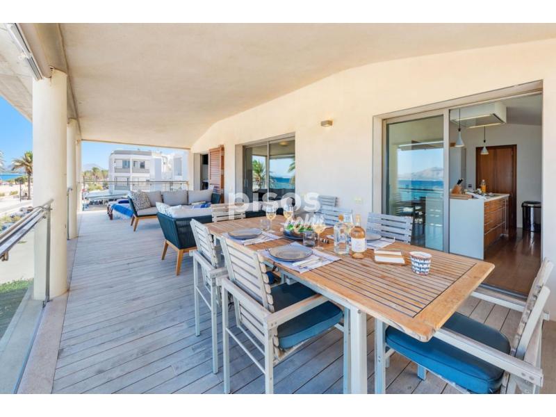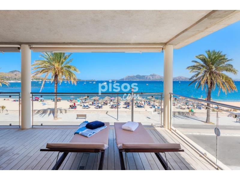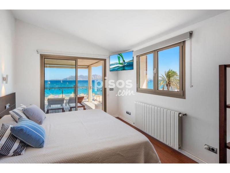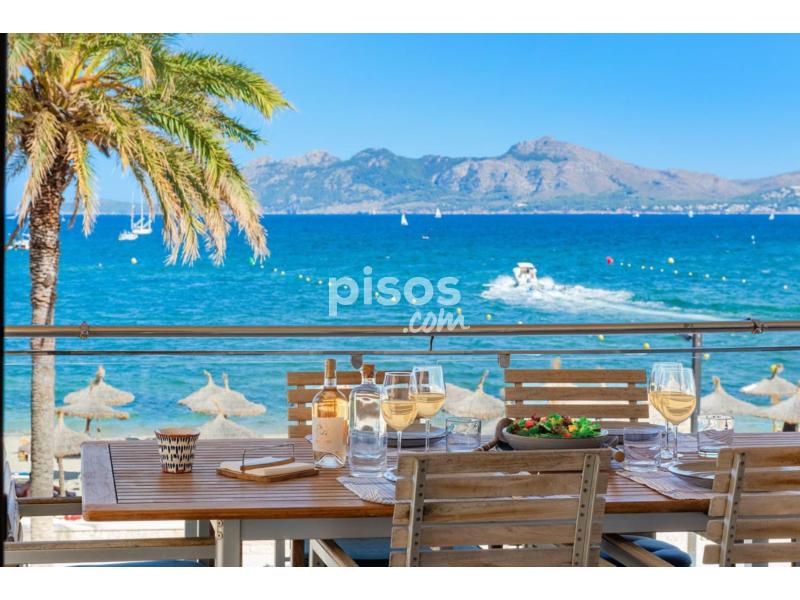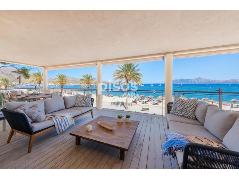 Exclusivo Ático en Primera Línea de Puerto Pollensa con Acceso Directo a la PlayaUbicado en la zona más privilegiada de Puerto Pollensa, este espectacular ático de 180 $m^2$ habitables representa una oportunidad única de vivir el Mediterráneo en su máxima expresión. La propiedad destaca por un diseño contemporáneo y cálido, donde los suelos de madera noble y los acabados en piedra natural se combinan para crear una atmósfera de lujo relajado. Su característica más exclusiva es, sin duda, el acceso directo y privado a la playa, un detalle de distinción que garantiza una conexión inmediata con el mar y la arena.La vivienda se distribuye de manera funcional y fluida. En la planta baja se encuentra el garaje privado para un vehículo, mientras que la planta principal alberga un amplio y luminoso salón-comedor que se abre directamente a una terraza con vistas panorámicas sobre la bahía. La zona de descanso consta de tres dormitorios de generosas dimensiones y dos baños completos de diseño moderno. La cocina, totalmente equipada, se integra perfectamente en la estética de la casa mediante elegantes cerramientos de madera escamoteables. Para garantizar el máximo confort durante todo el año, el ático dispone de climatización mediante bomba de calor (frío/calor) e internet de alta velocidad por fibra óptica.Condiciones del alquiler:La propiedad se alquila por un precio de 4.500 EUR/mes. Las condiciones de entrada incluyen el abono de 2 meses de depósito en concepto de fianza y 1,5 mensualidades en concepto de honorarios de intermediación inmobiliaria.