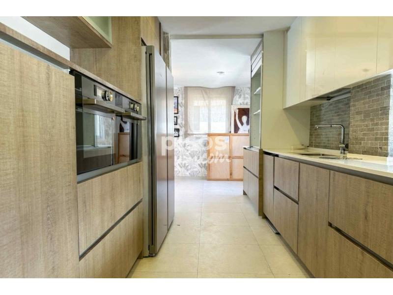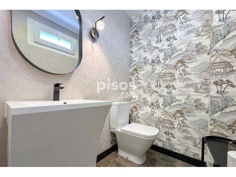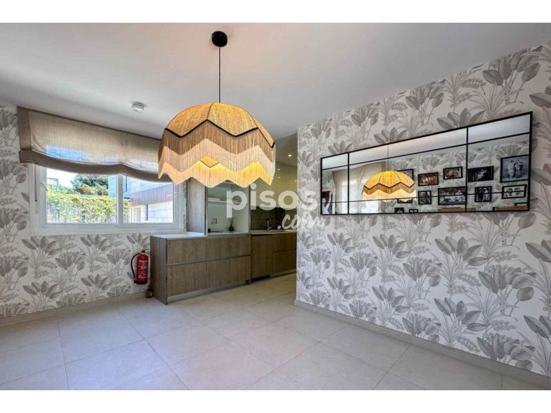 Se distribuye en 3 plantas. En la principal nos recibe un hall con aseo de cortesía, la cocina está totalmente equipada con electrodomésticos y el salón cuenta con unos enormes ventanales que nos conducen al porche acristalado y al jardín. La zona de descanso cuenta con un gran dormitorio con vestidor y baño en suite y dos dormitorios de buen tamaño que comparten un baño. Además se puede acceder a una terraza muy agradable. La planta inferior consta de una cocina auxiliar con salón, una habitación de servicio, un baño completo, sala de máquinas y sala auxiliar.