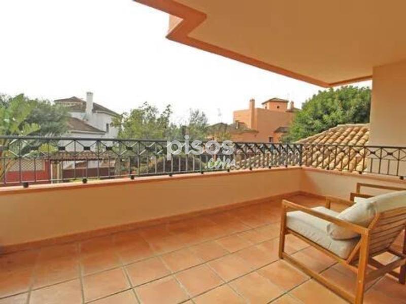 Amplio apartamento en Rio Real, a tan solo 5 minutos conduciendo al centro de Marbella. Rio Real es una zona consolidada rodeada de espectaculares campos de golf, cerca de colegios internacionales y de la playa. Es un apartamento en la primera planta orientado al este con vistas muy panoramicas al campo del golf, montaña y mar. La propiedad consta de 3 dormitorios y 3 baños. Salón grande con salida a la terraza. Dormitorio principal y uno de los dormitorios de invitados tienen salida a la terraza. Cocina independiente con zona de lavadero. La cocina y los armarios en los 3 dormitorios están recién renovados, todo a estrenar. Plaza de garaje y trastero incluidos en el precio. La urbanización tiene piscina comunitaria.