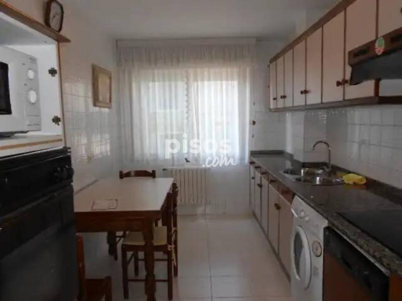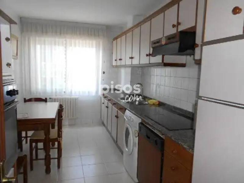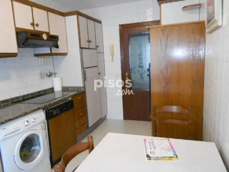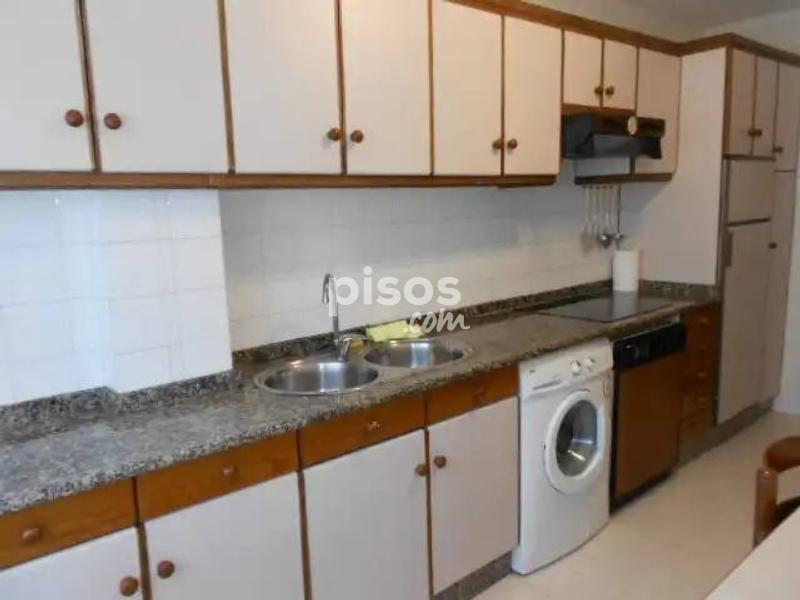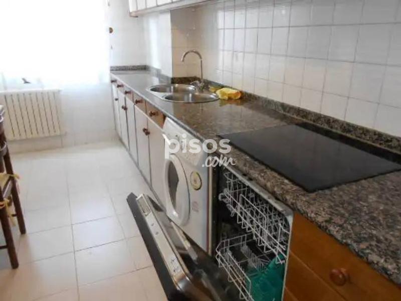 Se alquila piso de 3 habitaciones en Salgueiriños, Santiago de Compostela. Situado a 900m de la Xunta de Galicia, en San Caetano. Piso con ascensor amueblado de 90 metros. Dispone de 3 habitaciones, 2 baños completos, cocina equipada con vitrocerámica, horno, microondas, lavavajillas, nevera y lavadora, salón con galeria cerrada. Totalmente amueblado excepto sofás en el salón. Plaza de garaje y trastero incluido en el precio. Calefacción a gasoleo. Piso exterior