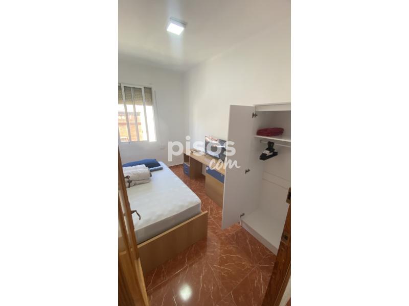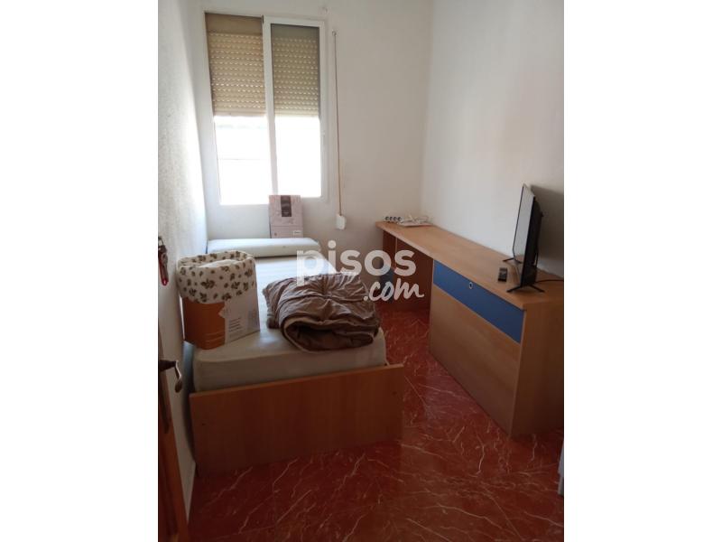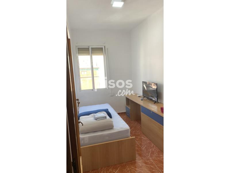 Habitación para persona sola con tele smart TV, armario, cama, escritorio, acceso a la cocina, baño y salón individual con balcón, a 5min de estación de metro y supermercado. En la casa viven dos mujeres.