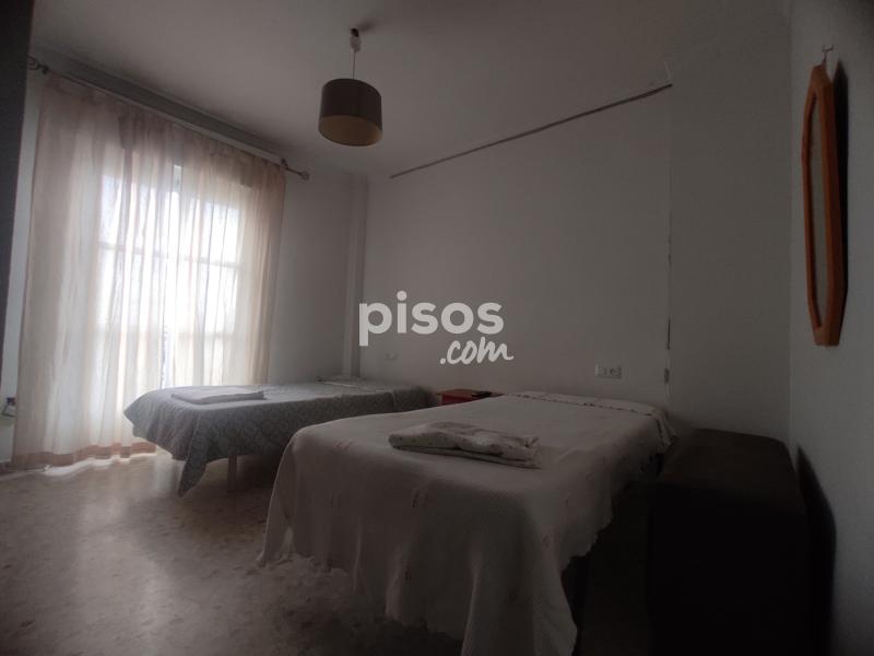 Se alquila habitación doble con dos camas individuales, balcón exterior, muy luminosa, ropero empotrado, televisor, mesita de noche, ropa de cama. Por 300€ mes cada cama, suministro incluido.