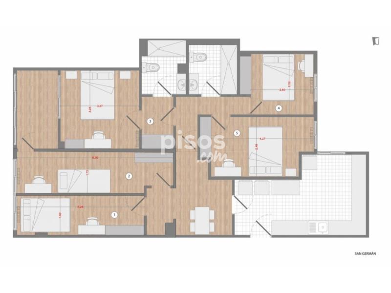 5 habitaciones en Apartment con 1 baños.