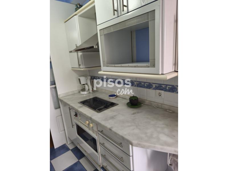 La vivienda cuenta con ascensor, calefacción eléctrica, cocina equipada, comedor, en buen estado de conservación, garaje, jardín comunitario, lavadero, completamente amueblado, capacidad para 3 inquilinos, puerta blindada, terraza, ventanas de doble acristalamiento, es exterior y no se admiten mascotas.
