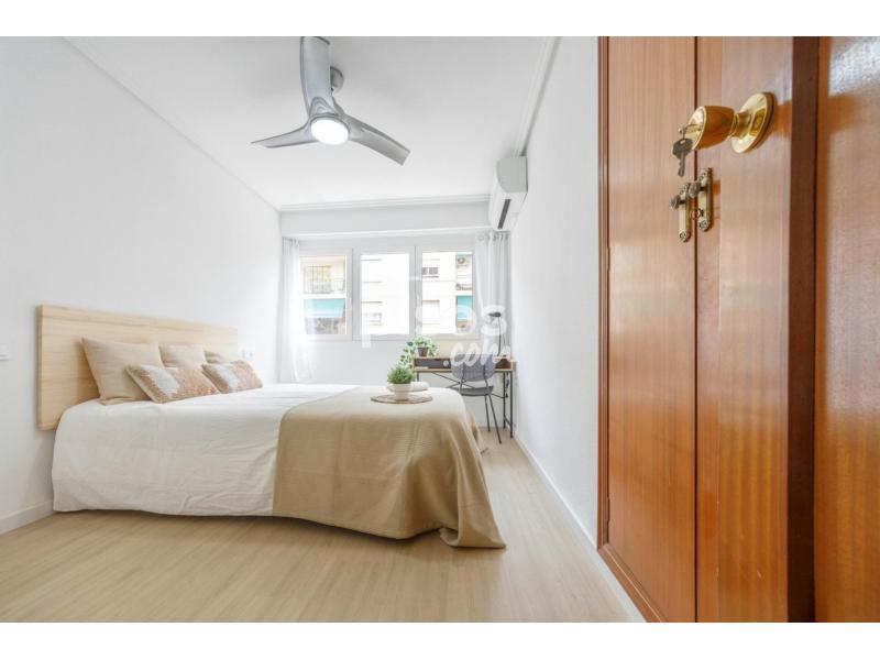 ROOM: Room in the center of Valencia. It is a very good option if you are a student or young worker and you want to spend some time in the beautiful city of Valencia. It is a fully equipped and furnished room: - Bed 135 x190cm - Wardrobe - Desk with lamp and chair - Bedside table - Window with exterior views - Lock for your privacy - Fan - Air conditioner APARTMENT: The flat is 100m2 and has 4 bedrooms, and 1 full shared bathroomThe common areas are really nice, with a fully equipped kitchen with: - Ceramic hob - Refrigerator - Oven - Microwave oven - Crockery and cutlery - Air conditioner EXPENSES: The rental price includes internet and a weekly cleaning of the common areas. The costs of bills aren''''t included on the rent, there are as follows: -Water: 10€/month -Electricity: 40€/month, if any month the consumption is more than this, the difference will be paid separately. In this case, the expenses are shared equal parts between the tenants. CLEANING SERVICE: We offer a free cleaning service once a week of the communal areas. It is the tenant''''s responsibility to keep the flat clean, tidy and in good condition. Our cleaning service is mainly to help you with the cleaning, but it is important to keep everything clean. Cleaning products must be provided by the tenants. You can find a list of the necessary cleaning products in the flat. BEDROOM CLOTHING: For a hygienic reason, we do not provide any bed linen, neither pillow, duvetor duvet cover. CHECK IN AND CHECK OUT: Check in will take place at the office. Once your booking is confirmed, you will receive details of how to get to the office, but it is within easy reach of the airport. We will meet you here to complete the payments, sign the rental contract and provide you with a set of keys to your new home. Check-in hours will be from 16:00 to 20:00. If you arrive in Valencia earlier you can leave your luggage in my office in the meantime. If you arrive later than 8:00PM we will leave the keys at a 24H point, where you can pick them up. Check out will be at the latest on the last day of the rental contract at 11:00AM. If your flight is after this time, you can leave your luggage here at the office free of charge.