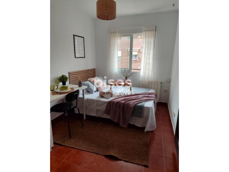 - Descripción de la propiedad en Uniplaces: Important Note: WE ACCEPT TENANTS FROM 18 to 40 YEARS OLD. Te presentamos una magnífica habitación con una luz increíble y un gran ventanal. La habitación esta equipada con cama de 1.35cm, mesitas de noche, espejo, aire acondicionado, escritorio, armario empotrado, aire acondicionado, cubiertos.. . La ubicación es excelente, unas de las mejores zonas para jóvenes trabajadores y estudiantes, a 5 minutos del metro, a 15 minutos en bus al centro, a 15 minutos en bus y metro a ciudad universitaria. Incluye: -Todos los suministros incluidos: gas, luz, agua y wifi. -Técnico de mantenimiento para reparaciones. - Gestión del contrato. -Limpieza en las zonas comunes pasillos, baños, cocina. -Flexibilidad de contratos. -Habitaciones con altos estándares de calidad en mobiliario. -Puerta con cerradura. Comparte piso con jóvenes estudiantes y/o profesionales con buen ambiente