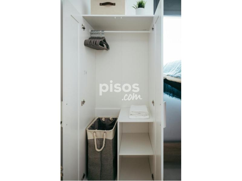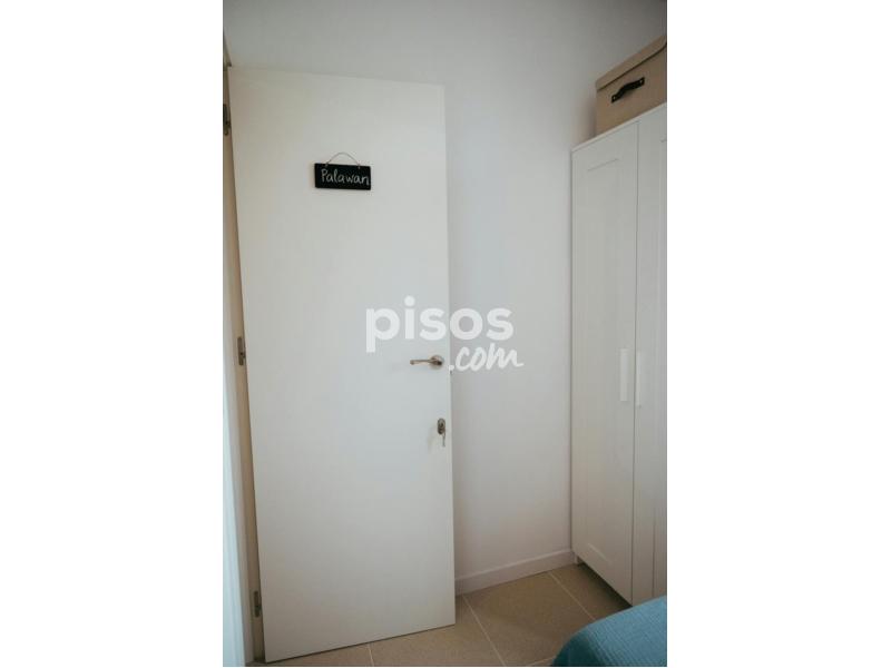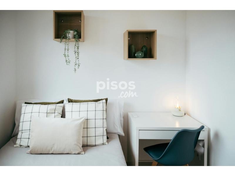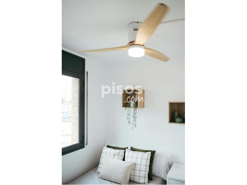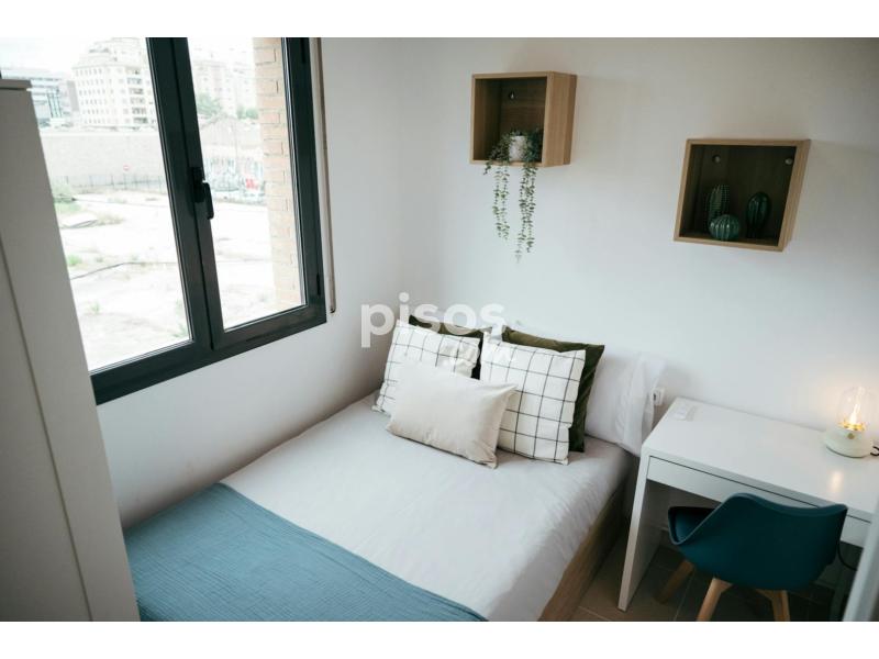 Bright and modern double room in Poblenou, fully furnished with a lift-up bed, Smart TV, desk, wardrobe, ceiling fan, and bedding (pillows, comforter, sheets, towels) ?? — perfect for a comfortable move-in ready stay.