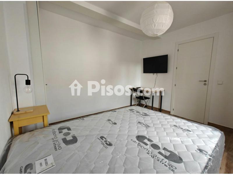 Habitación 1: Amplia habitación individual, exterior, con cama doble de 135cm, canapé, televisión, armario dos amplios armarios de suelo a techo, escritorio, silla, dos mesillas de noche, radiador y mucha luz natural.