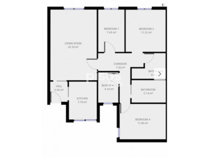4 habitaciones en Apartment con 1 baños.